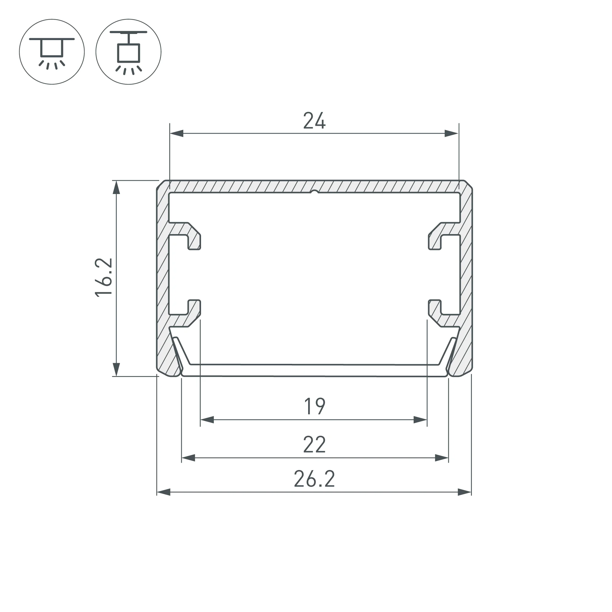 Алюминиевый анодированный профиль для светодиодных лент и линеек. Габаритные размеры (L×W×H): 3000×26,2×16,2 мм. Ширина площадки для ленты 24 мм. Экраны, заглушки и другие аксессуары приобретаются отдельно. Цена за 1 метр. Кратность заказа поставщику: 3 м.