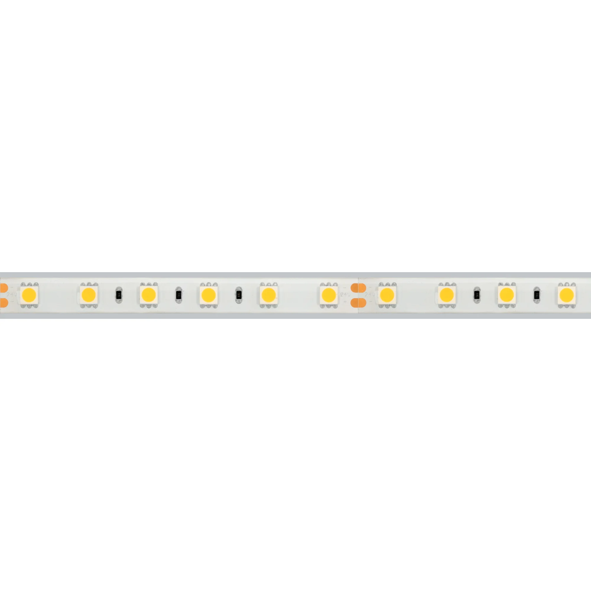 Светодиодная лента RT серии B60. Светодиоды 5060, 60 шт/м, белая плата шириной 10 мм, скотч 3M. Цвет ТЕПЛЫЙ 3000K, индекс цветопередачи CRI>85, угол 120°. Питание 24 В, мощность 14.4 Вт/м (72 Вт на 5 м). Размеры 5000x10x2.2 мм. Мин. отрезок 100 мм, 6 светодиодов. Цена за 1 м. Кратность заказа поставщику: 5 м.