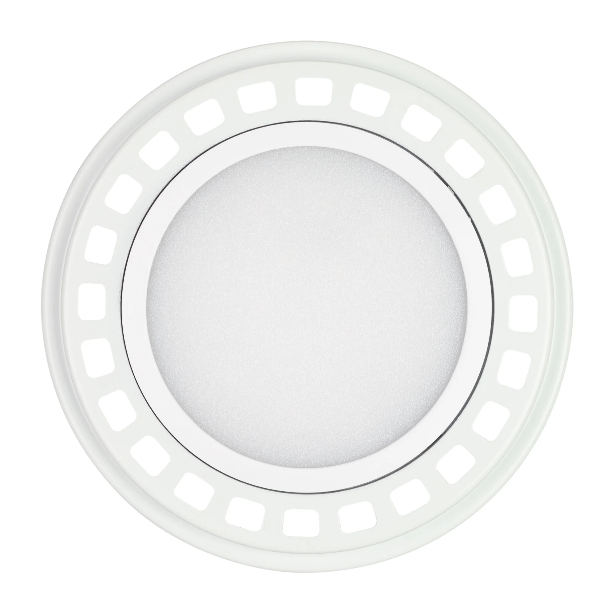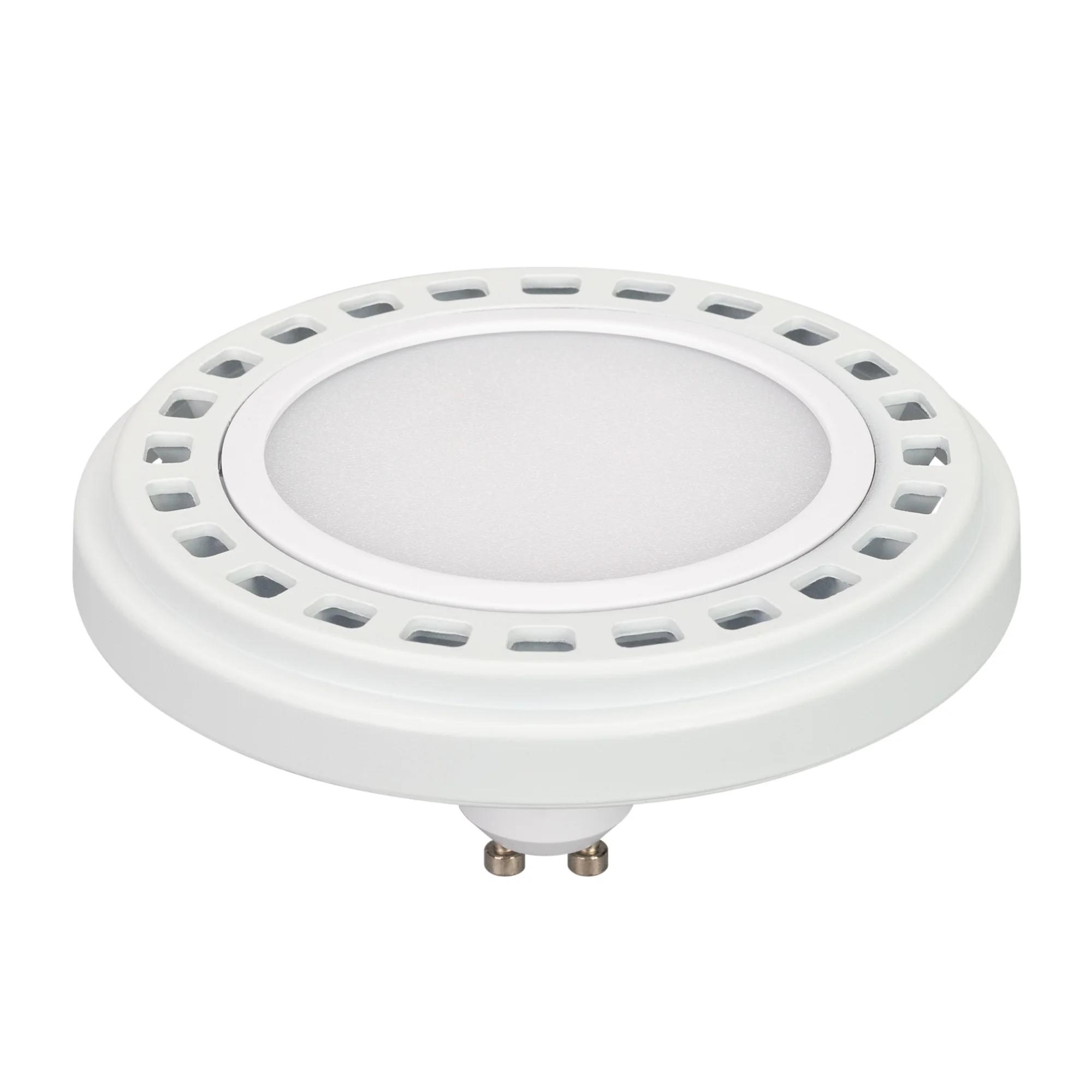 Светодиодная лампа AR111, цоколь GU10, светодиод SMD, цвет БЕЛЫЙ ДНЕВНОЙ 4000К, угол 120°, мощность 15Вт, напряжение 230V, Индекс цветопередачи CRI>80 Диммер TRIAC Цвет рамки белый