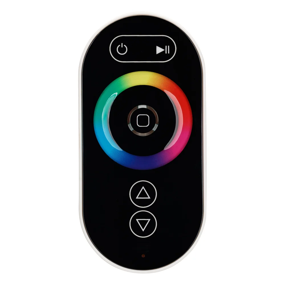 4-канальный RGBW контроллер с сенсорным радиопультом Овал черного цвета. Питание 12-24VDC, макс.ток 4х6A, максимальная мощность 288-576W. Габариты контроллера 91х88х24 мм.