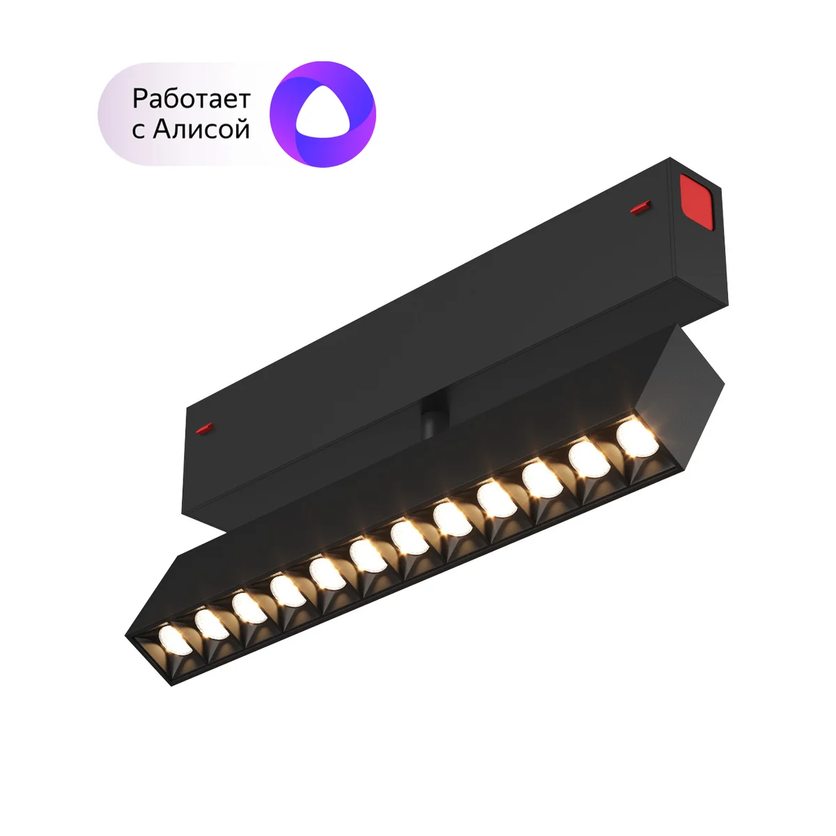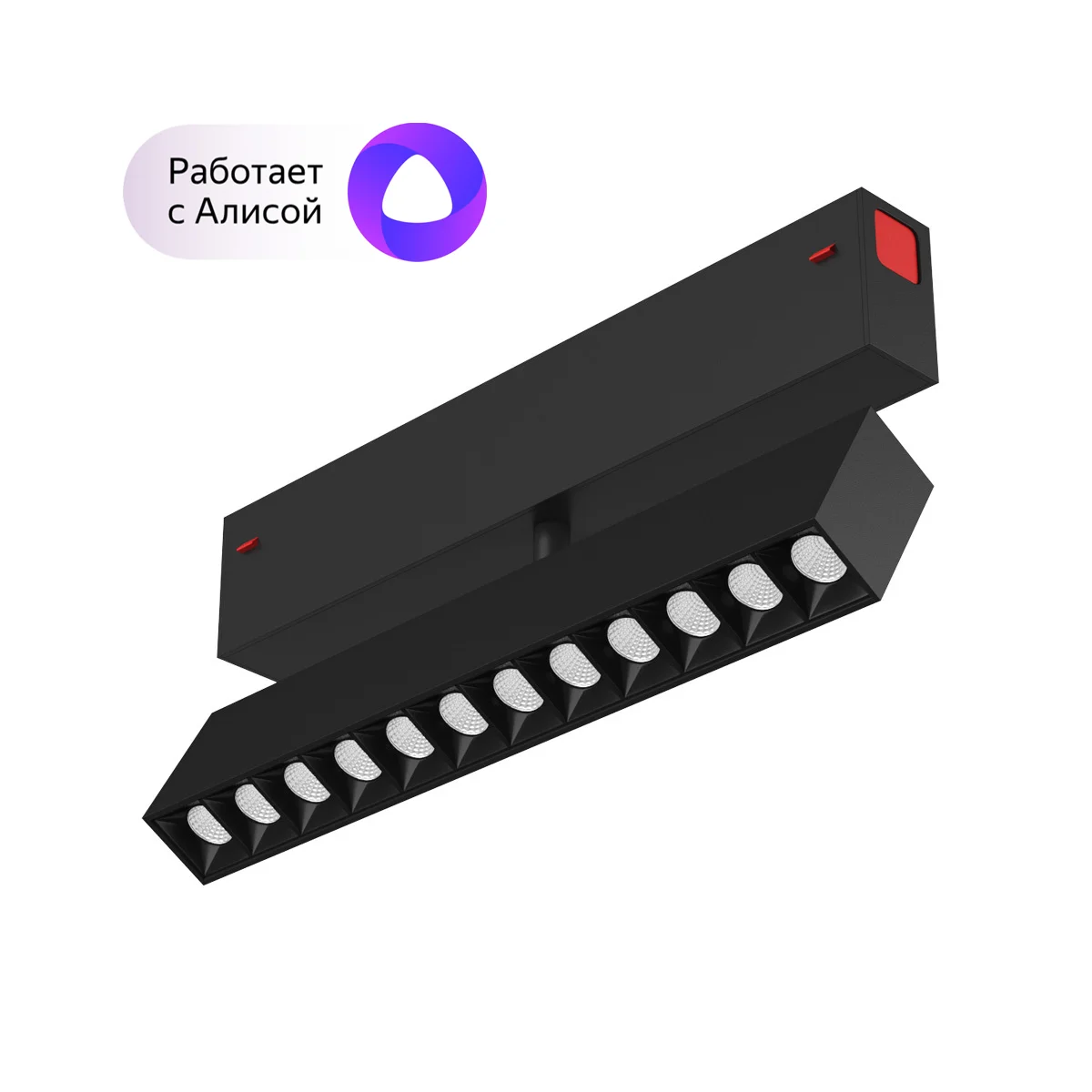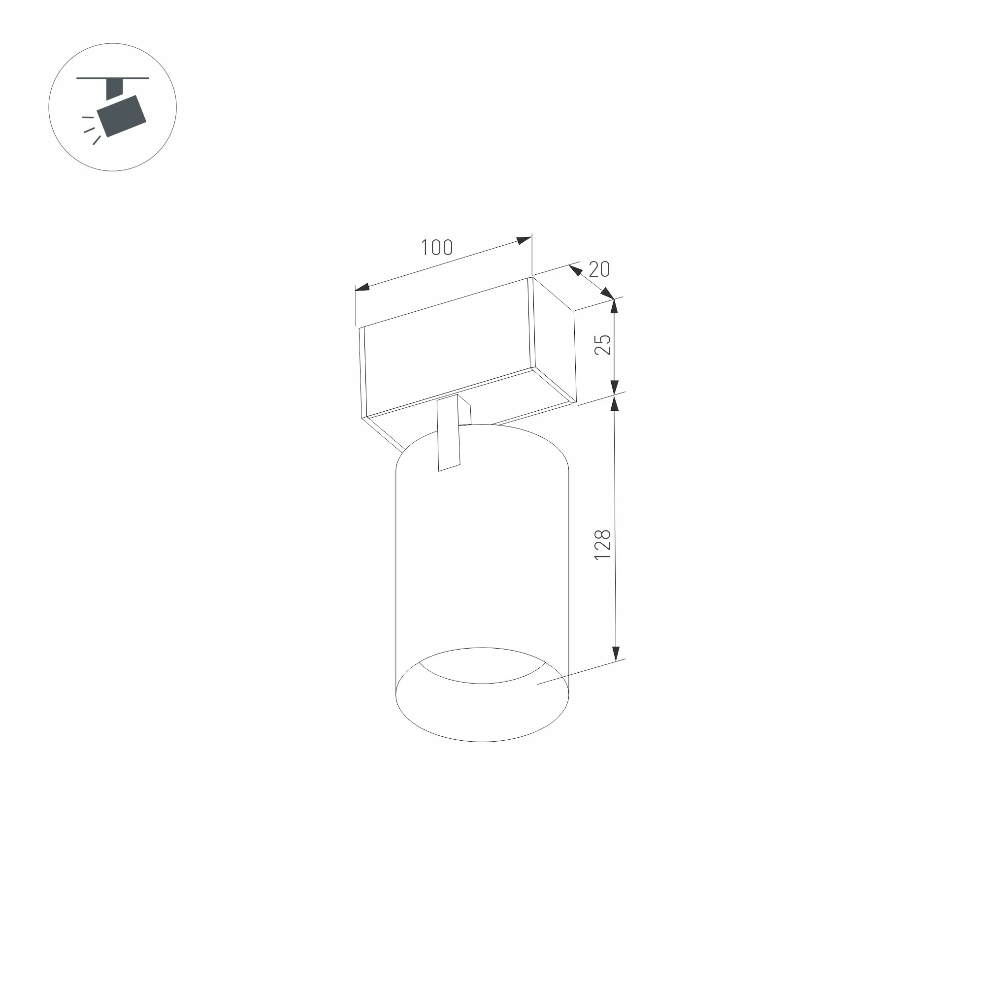 Светильник поворотный для магнитных треков шириной 25 мм, 12 Вт. Цвет свечения ДНЕВНОЙ 4000K, световой поток 840лм, угол 30°, CRI>90. Корпус прямоугольный, металл, цвет черный, IP20. Размеры LxWxH 100x20x150 мм. Входное напряжение DC24V, мощность 12 Вт. Драйвер AС230V/DC24V поставляется отдельно.Диаметр светоизлучающего модуля 35 мм.