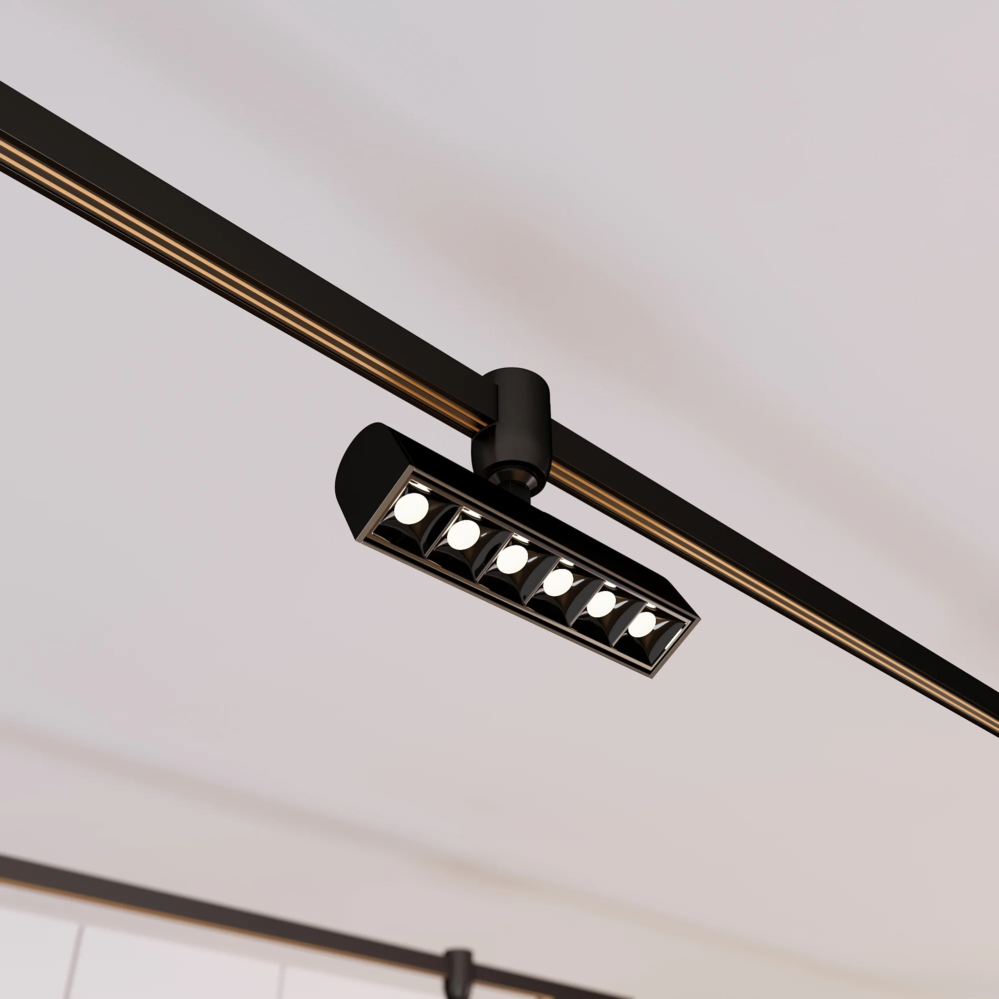 Светильник для магнитных треков MAG-ORIENT шириной 26 мм. Мощность 12 Вт, св. поток 1090 лм, 91 лм/Вт, теплый 3000 K, CRI>94, угол 50°, напряжение питания 48 В. Черный фигурный корпус из металл, экран поликарбонат, степень защиты IP20. Размеры LxWxH 204x45x146 мм. Длина светоизлучающего модуля 100мм. Монтаж на трек MAG-ORIENT. Пульсация <1%.