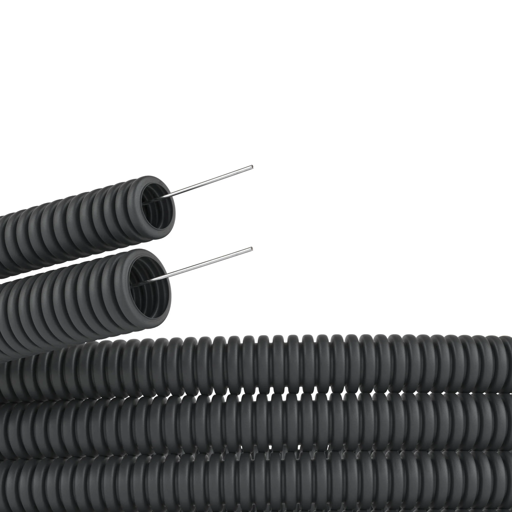 Легкая гибкая труба из ПНД предназначена для прокладки в штробах стен, стяжке полов, используется в монолитном бетоностроении. Входящая в комплект протяжка облегчает прокладку кабеля внутри трубы. Ударная прочность труб — не менее 2 Дж при температуре — 40оС. Диаметр трубы — 50 мм. Цвет — черный.