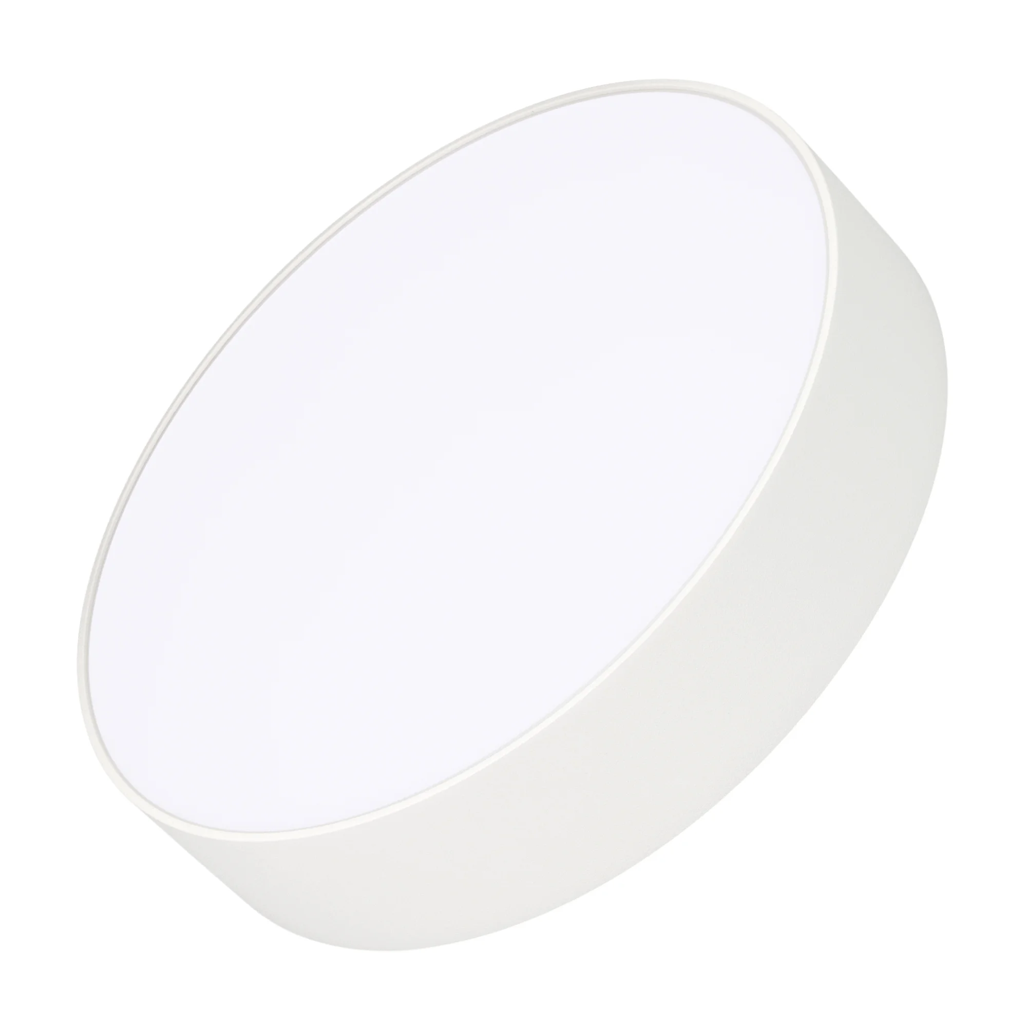 Накладной светильник. Мощность 30 Вт, св. поток 2100-2450 лм, 80-90 лм/Вт, дневной 4000 K, CRI>90, угол 120°, напряжение питания 230 В. Белый круглый корпус из алюминия, экран PC, степень защиты IP40. Размер: диаметр 250 мм, высота 52 мм. Монтаж накладной. Драйвер 27-43 В, 700 мА, пульсация <5%.