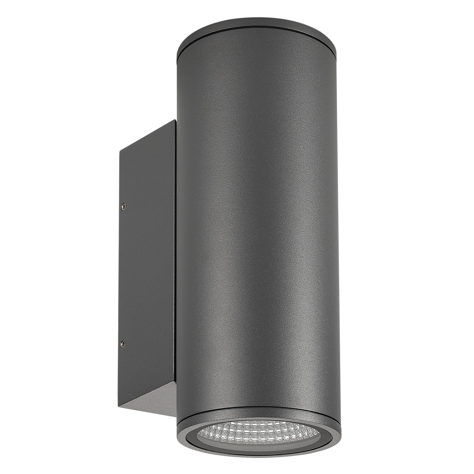 Накладной настенный светильник 2×12Вт, серый алюминиевый корпус, оптическое закаленное стекло. Цвет ТЕПЛЫЙ БЕЛЫЙ 3000K, св.поток 1720лм, CRI(Ra)>80, угол 44°, свет вверх-вниз. Размер 133x90x220мм. IP54. Питание AC230V, 24Вт, встроенный драйвер.