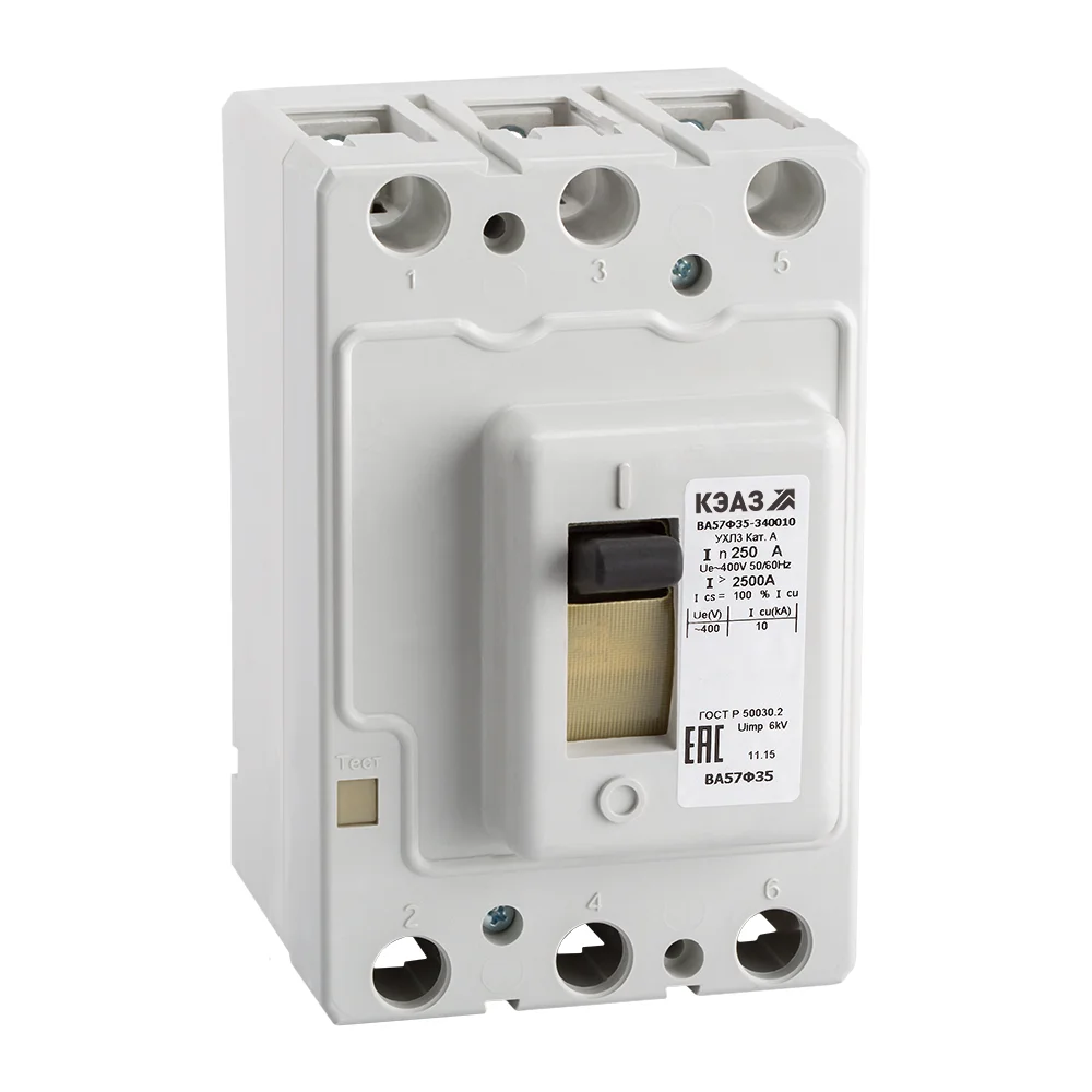 Блочный автоматический 3 полюсный выключатель переменного тока с предельной коммутационной способностью при переменном токе 40 кА на номинальный ток 250 А .