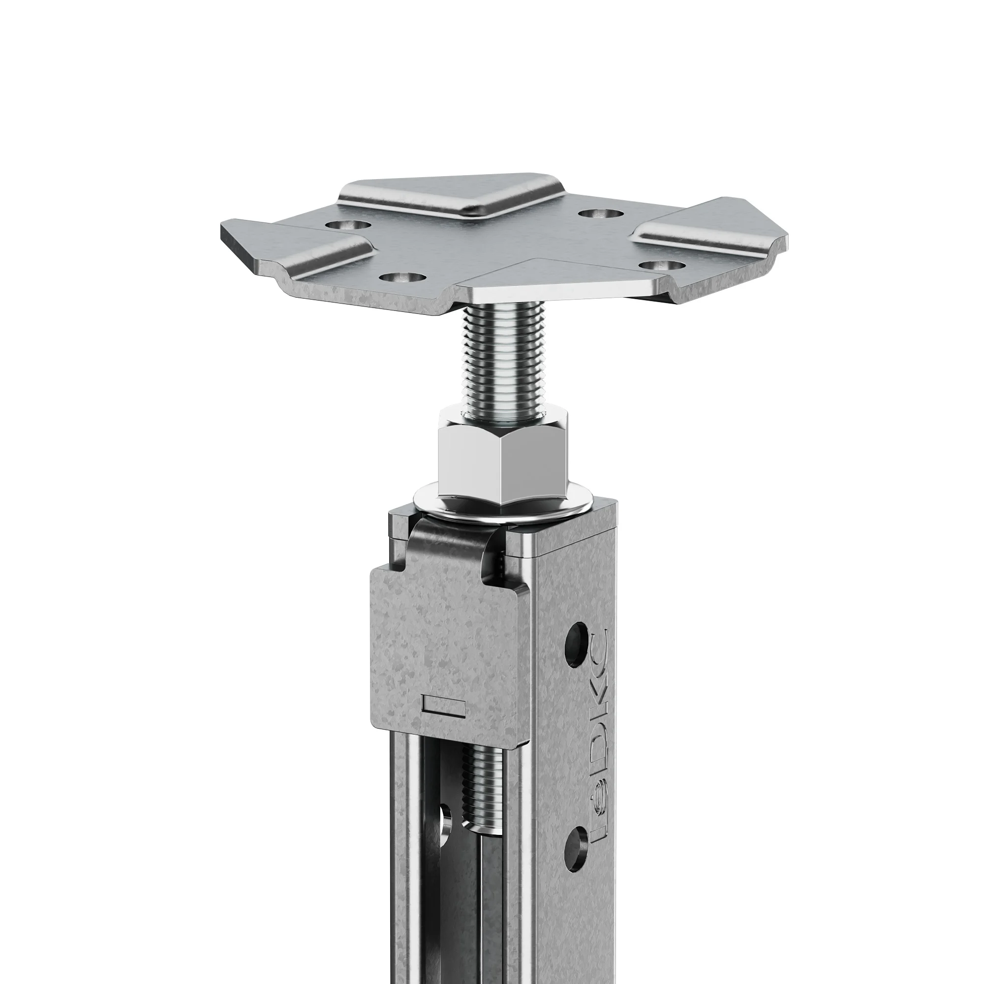 Одинарная стойка фальшпола длиной 425 мм используется как несущий элемент конструкции фальшпола. Вращением верхней площадки со шпилькой задаётся высота уровня фальшпола. Высота стойки регулируется в диапазоне 30 мм. Изготовлена на основе С-образного профиля BPM-41 из стали толщиной 2,5 мм.