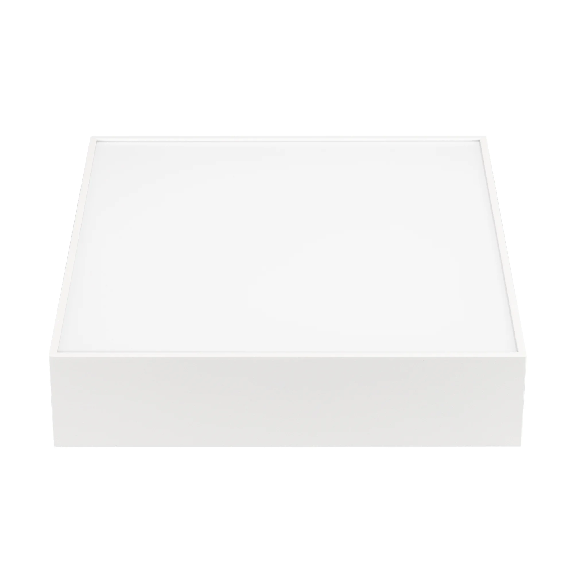 Накладной светильник. Мощность 25 Вт, св. поток 1440-1900 лм, 76 лм/Вт, дневной 4000 K, CRI>90, угол 120°, напряжение питания 230 В. Белый квадратный корпус из алюминия, экран PC, степень защиты IP40. Размер: длина 250 мм, ширина 250 мм, высота 59 мм. Монтаж накладной. Драйвер 27-45 В, 600 мА, пульсация <5%.