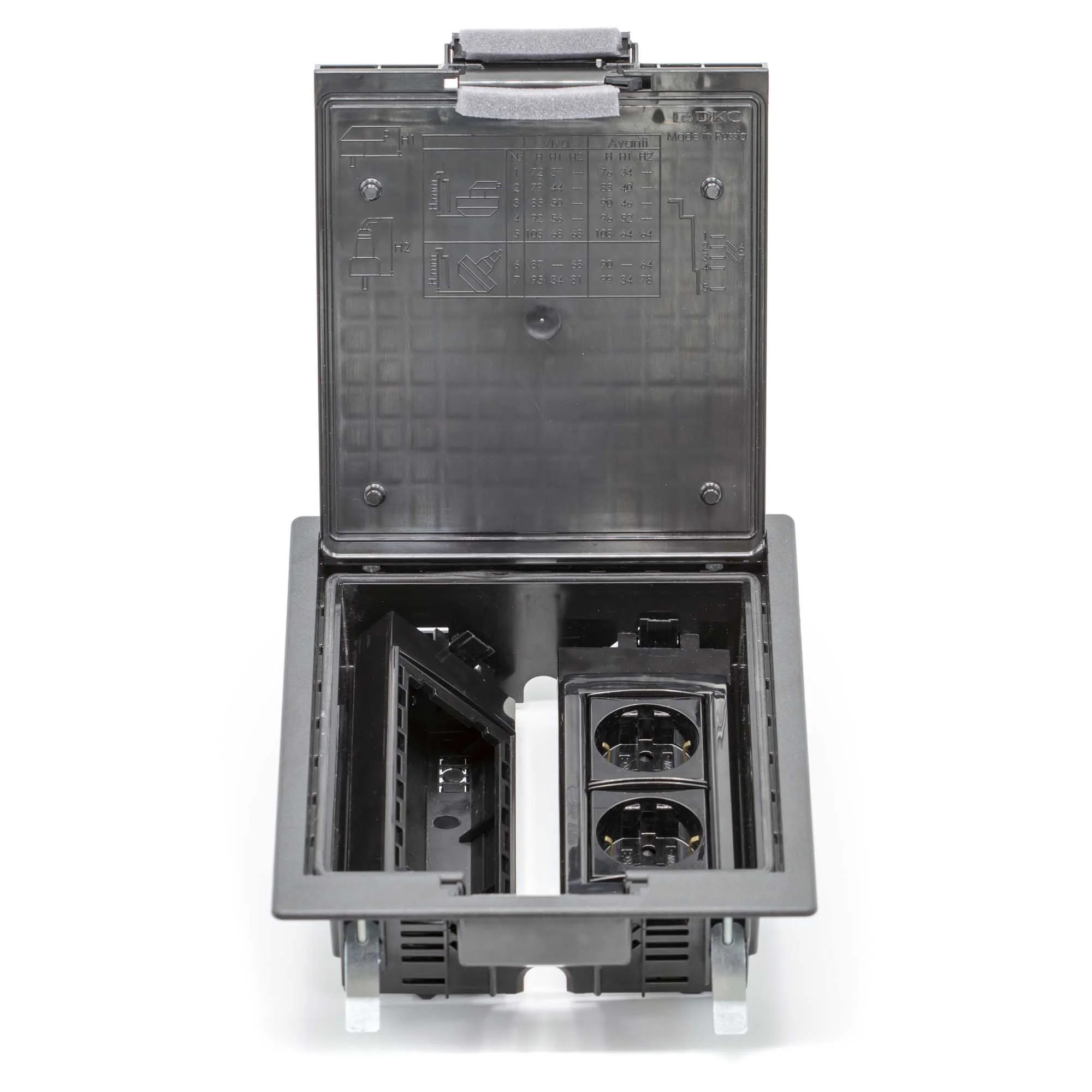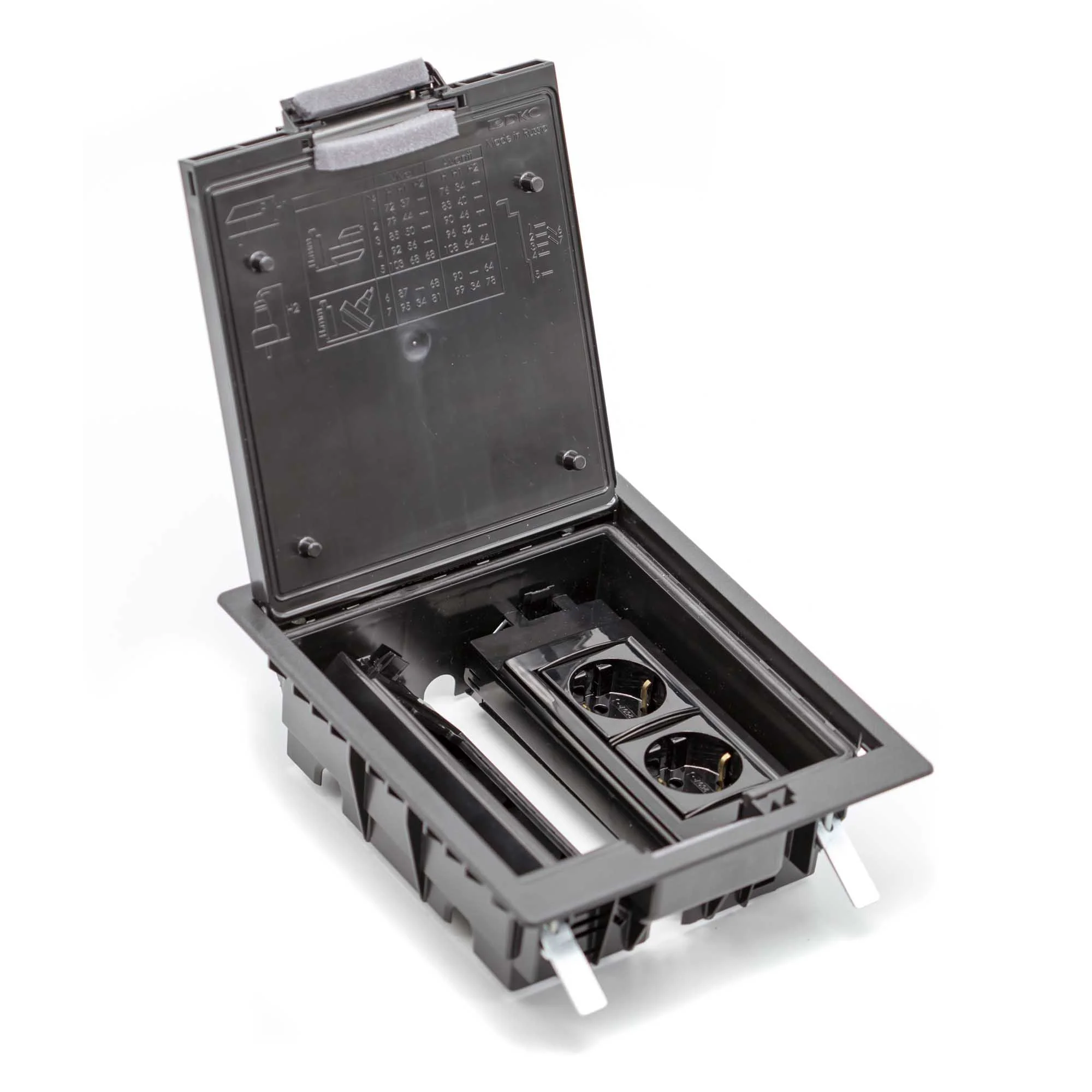 Назначение: организация рабочих мест в помещениях с открытым пространством. Устанавливается в фальшпол (толщина плит 20-45 мм), отверстие для монтажа 218×182 мм. Глубина монтажа от 73 до 108 мм. Крышка открывается под углом 110 градусов, предусмотрен монтаж напольного покрытия толщиной до 8 мм. Крышка усилена стальным листом, нагрузка: на малую площадь − 2000Н, на большую площадь […]