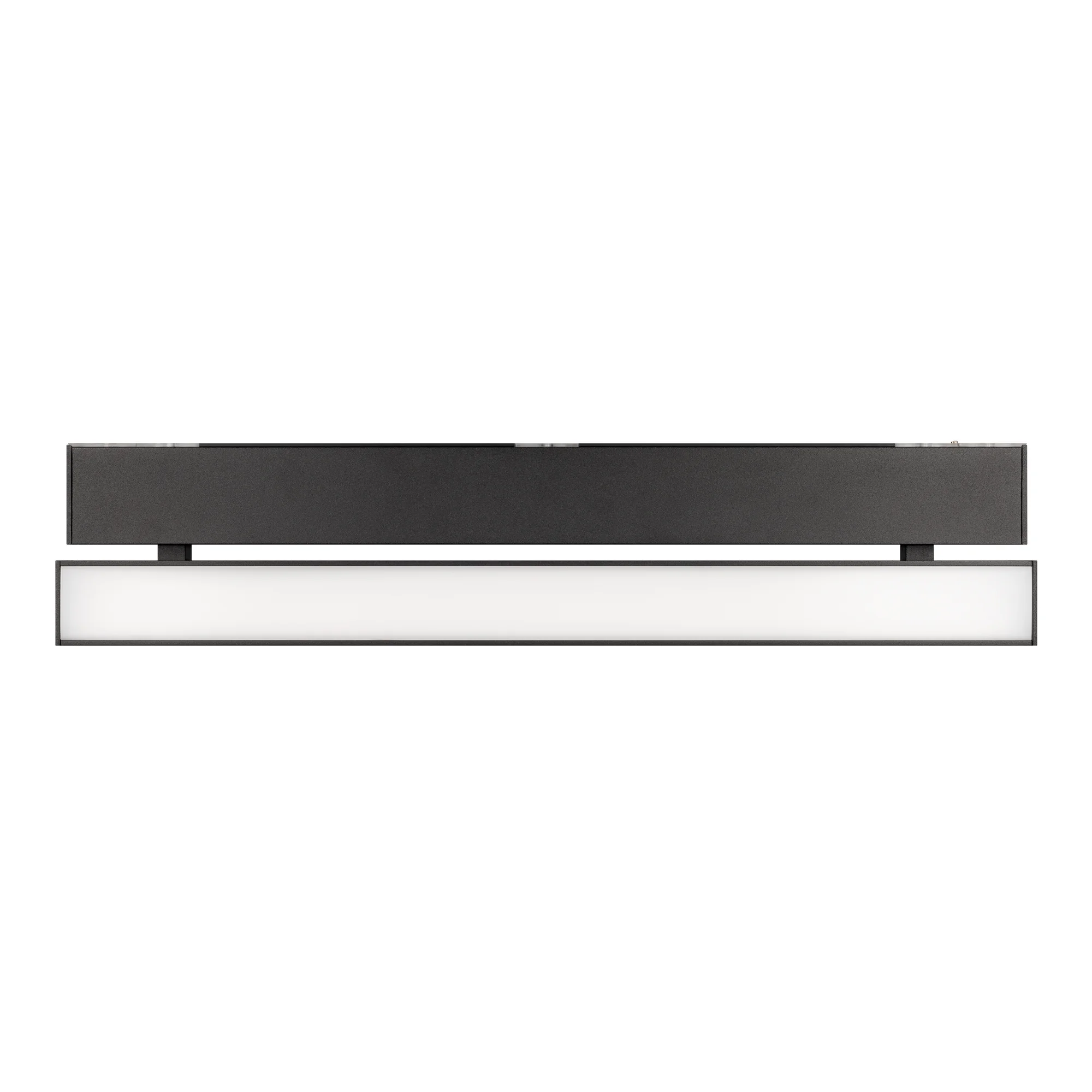 Подвесной, накладной магнитный трек ORIENT , длина 1000мм. DC48V. Материал алюминий, цвет черный. Заглушки в комплект не входят. Размер ДxШxВ: 1000×26.1×52.2мм. Размер (с учетом заглушек) ДxШxВ: 1005×26.2×52.2. Крепеж для накладного монтажа в комплекте. Аксессуары для подвесного монтажа в комплект не входят.