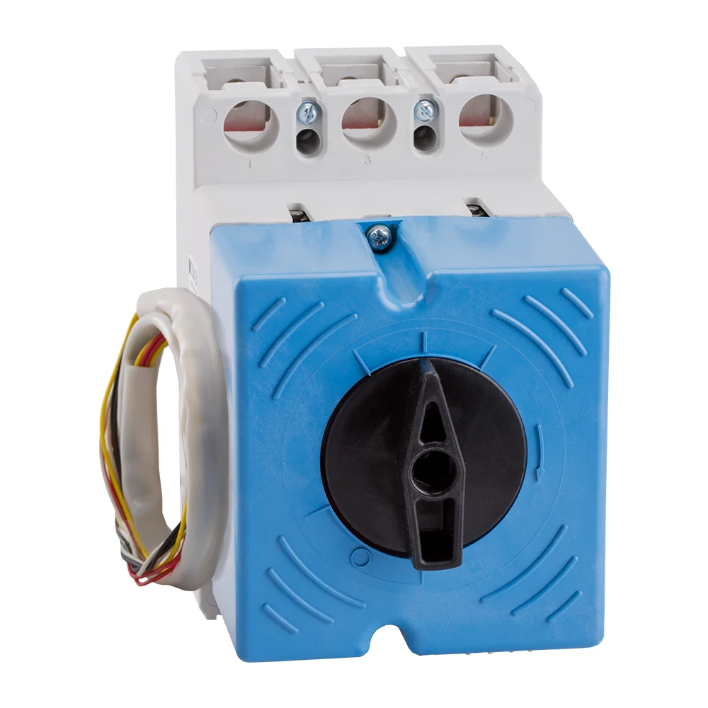 Блочный автоматический 3 полюсный выключатель переменного тока с предельной коммутационной способностью при переменном токе 20 кА на номинальный ток 80 А .
