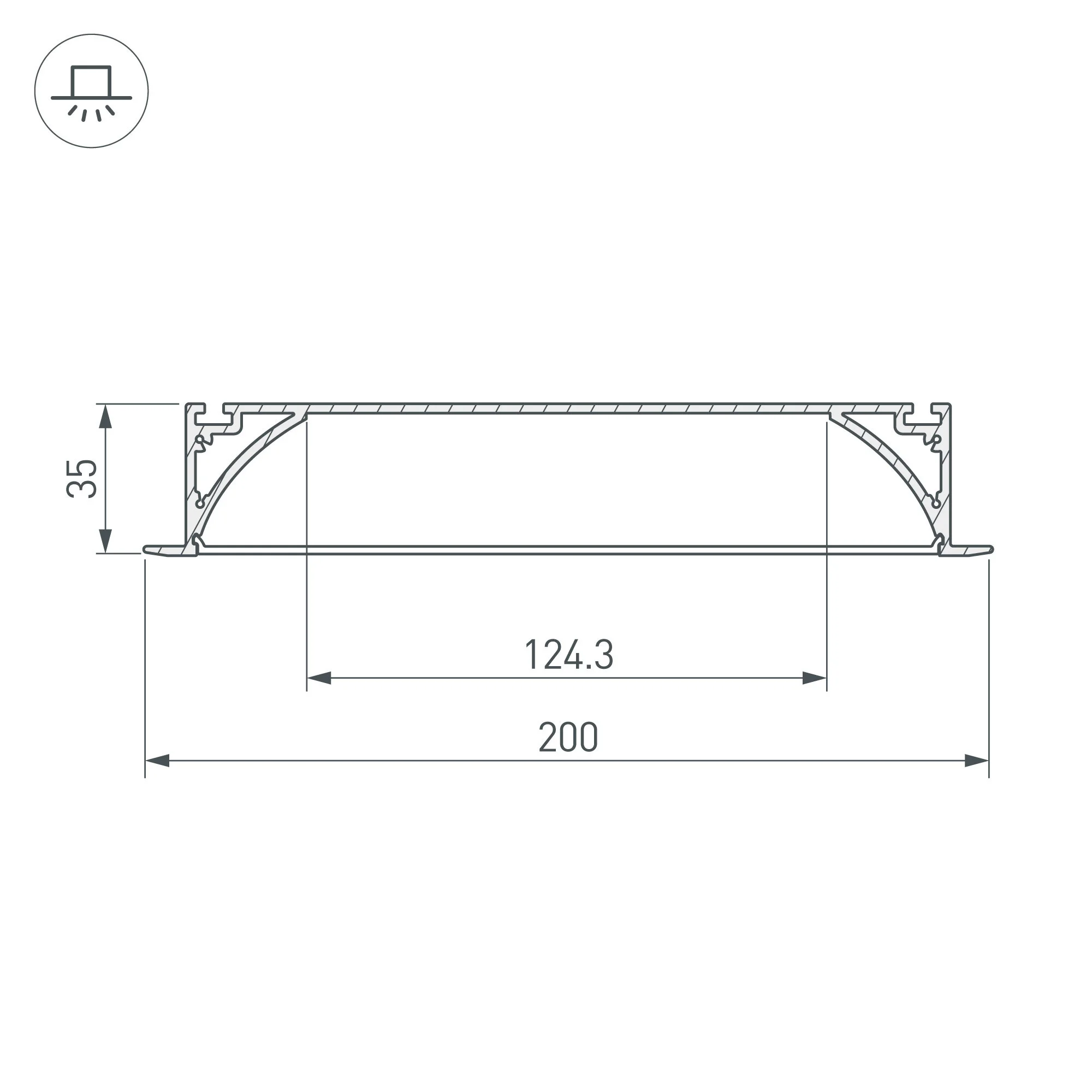 Комплект с экраном. Алюминиевый анодированный встраиваемый профиль для светодиодных лент и линеек. Габаритные размеры (L×W×H): 2000x200x35 мм. Ширина встраиваемой части — 180 мм. Ширина площадки для ленты 124,3 мм. Аксессуары приобретаются отдельно. Цена за комплект: профиль — 2 м, экран — 2 м.