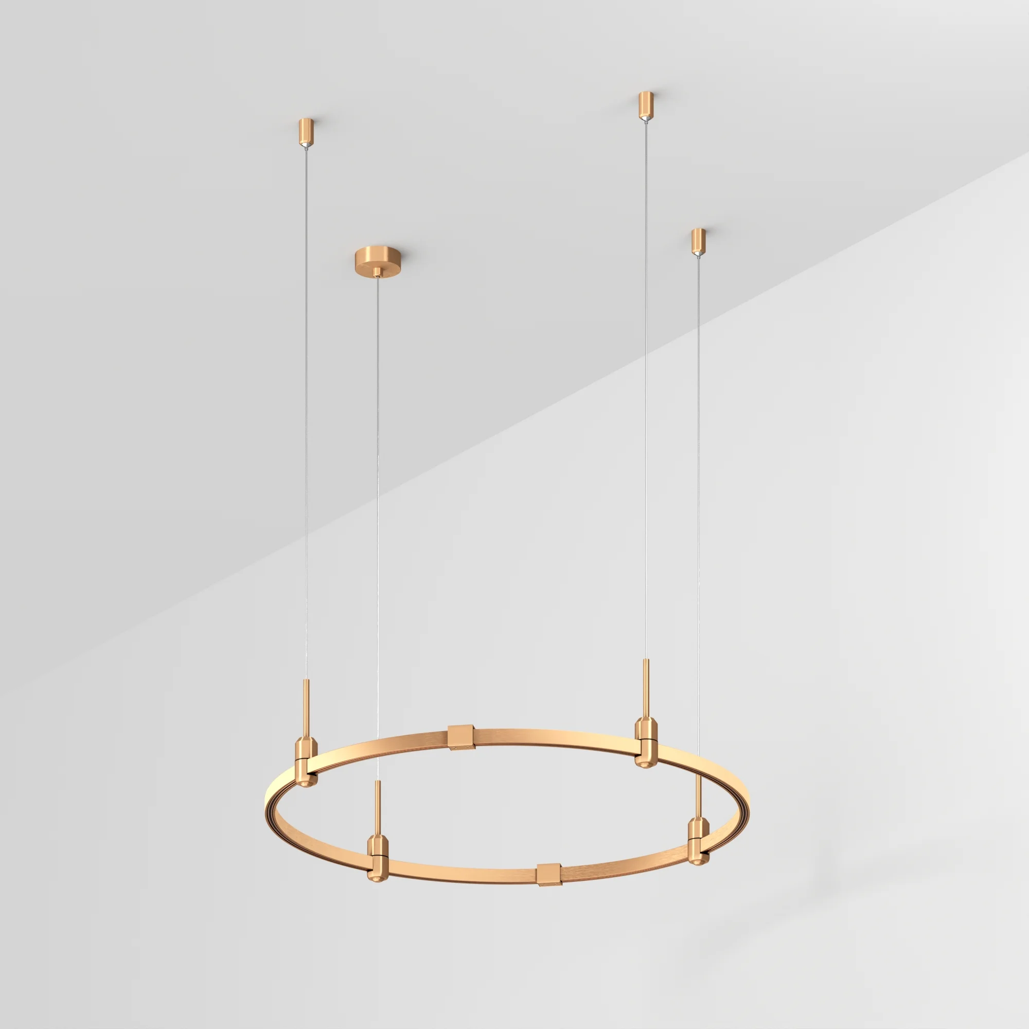 Подвесная конструкция APRIORI, форма круг. В комплекте треки с аксессуарами и гибкими подвесами. DC48V. Материал алюминий, цвет светлое золото. Размер: диаметр 800мм, высота 22мм. Светильники и источники питания приобретаются отдельно.