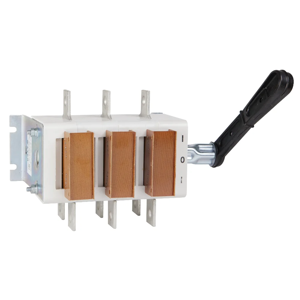 Выключатель-разъединитель 3 полюсный на номинальный ток 400 А, в котором установлена съемная рукоятка.