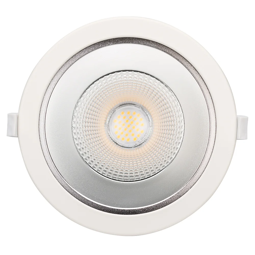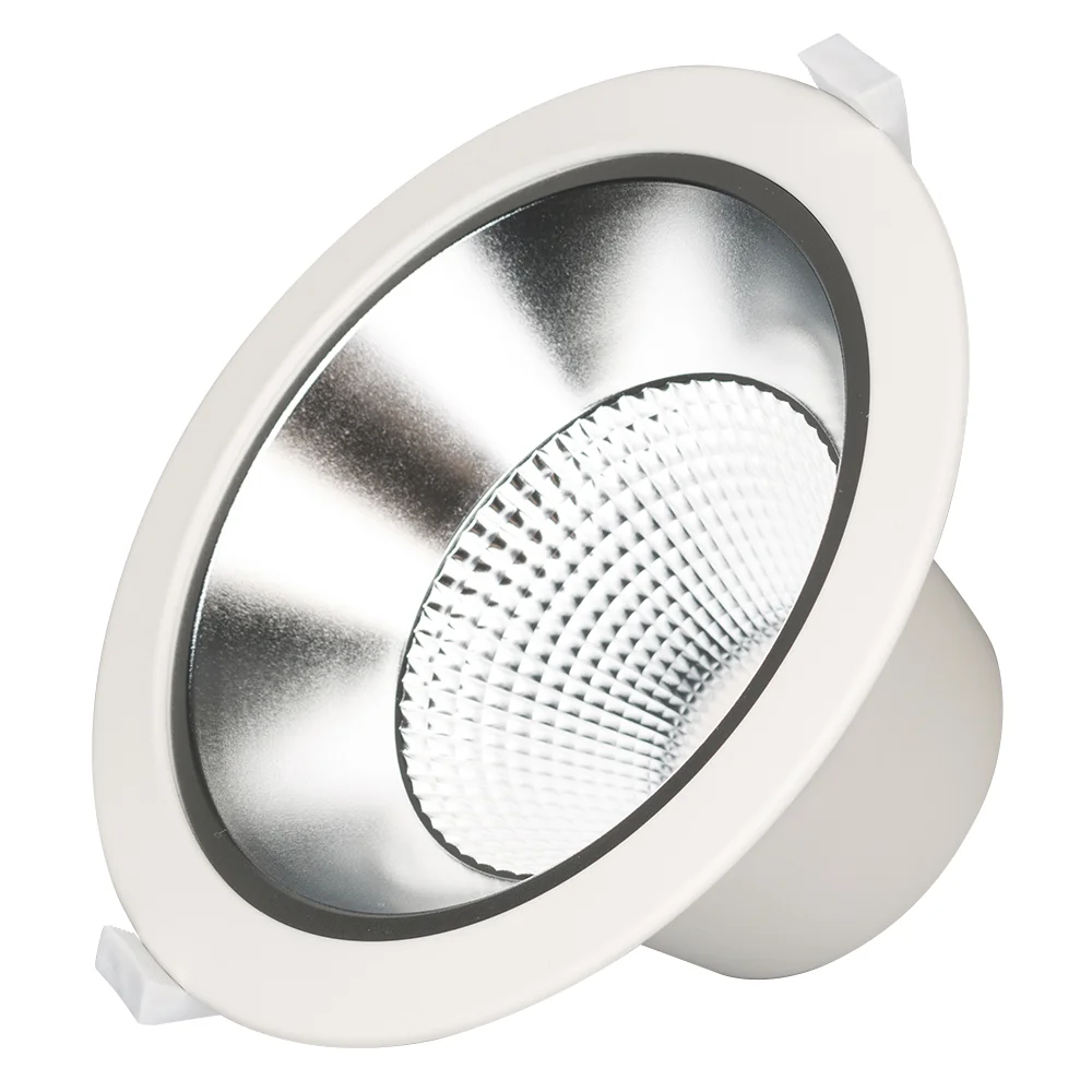 Встраиваемый светильник «Даунлайт» 35Вт. Цвет свечения ДНЕВНОЙ 4000К. Световой поток 3150лм, угол 50°, CRI>80. Белый корпус. Питание AC220-240V. Габариты: Ø232х118мм, врезное отверстие Ø195-210мм. Драйвер в комплекте (26.5-44.5V, 900mA).