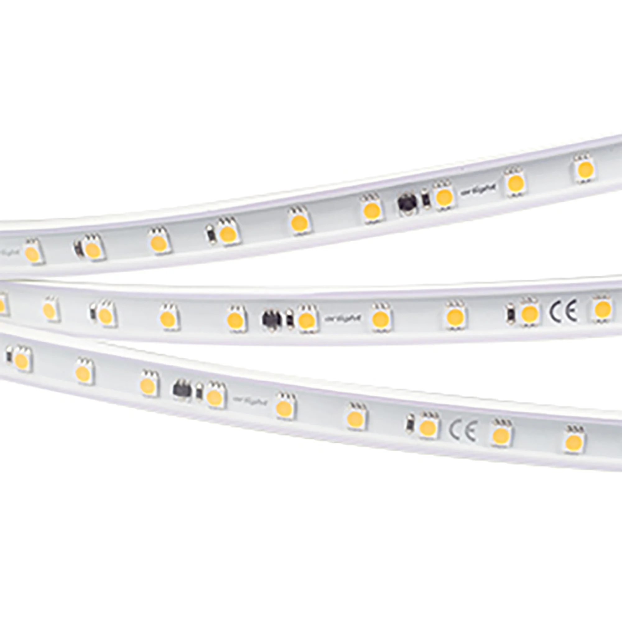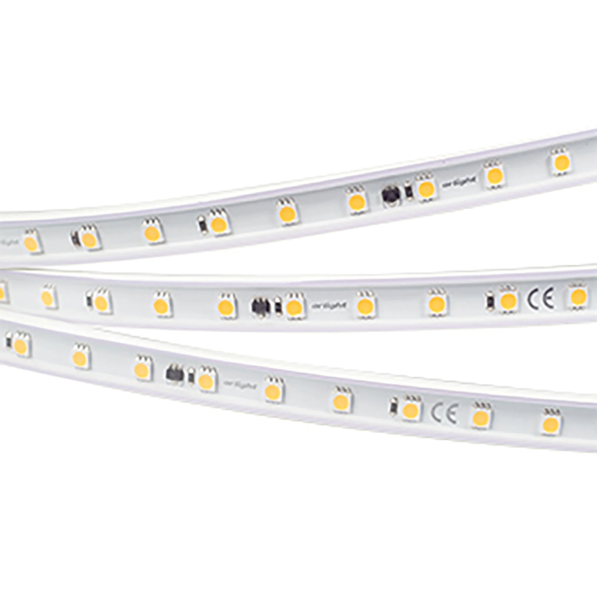 Светодиодная герметичная лента ARL серии B54, IP65 (PV — трубка, ПВХ экструзия). Светодиоды 5060, 54 шт/м, белая плата шириной 12 мм. Цвет ТЕПЛЫЙ 3000K, индекс цветопередачи CRI>90, угол 120°. Питание 230 В, мощность 8 Вт/м (80 Вт на 10 м). Размеры 10000×15.5×6 мм. Мин. отрезок 500 мм, 27 светодиодов. Цена за 1 м. Светодиодная лента […]