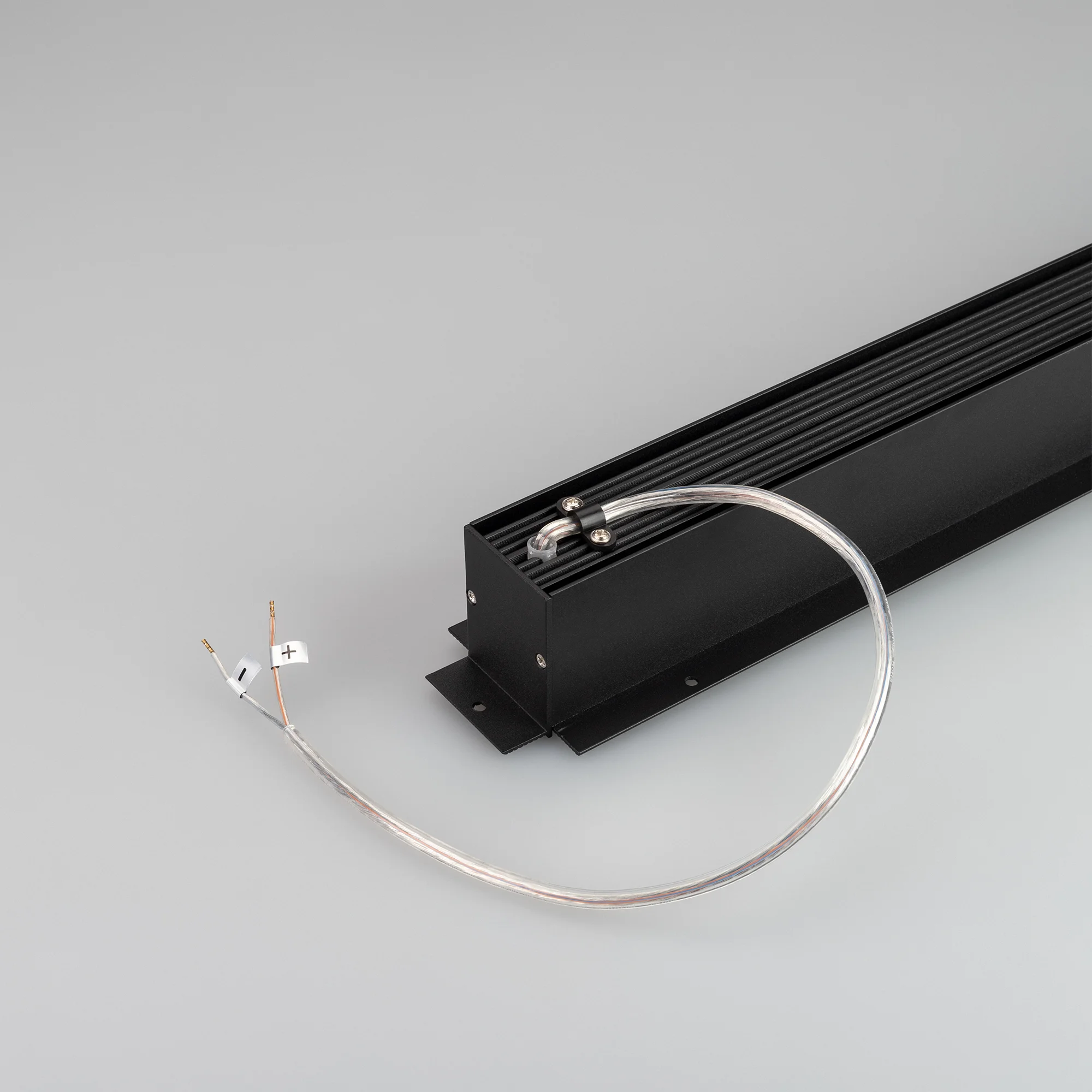 Встраиваемый магнитный трек с фланцем, длина 1540мм. DC24V. Материал алюминий, цвет черный. Две заглушки в комплекте. Размер ДxШxВ: 1500x45x60мм. Размер (с учетом заглушек и фланцев) ДxШxВ: 1540x75x60мм. Установка в отверстие ДхШхВ 1515x50x70мм. DC24V. Совместим с крышкой.