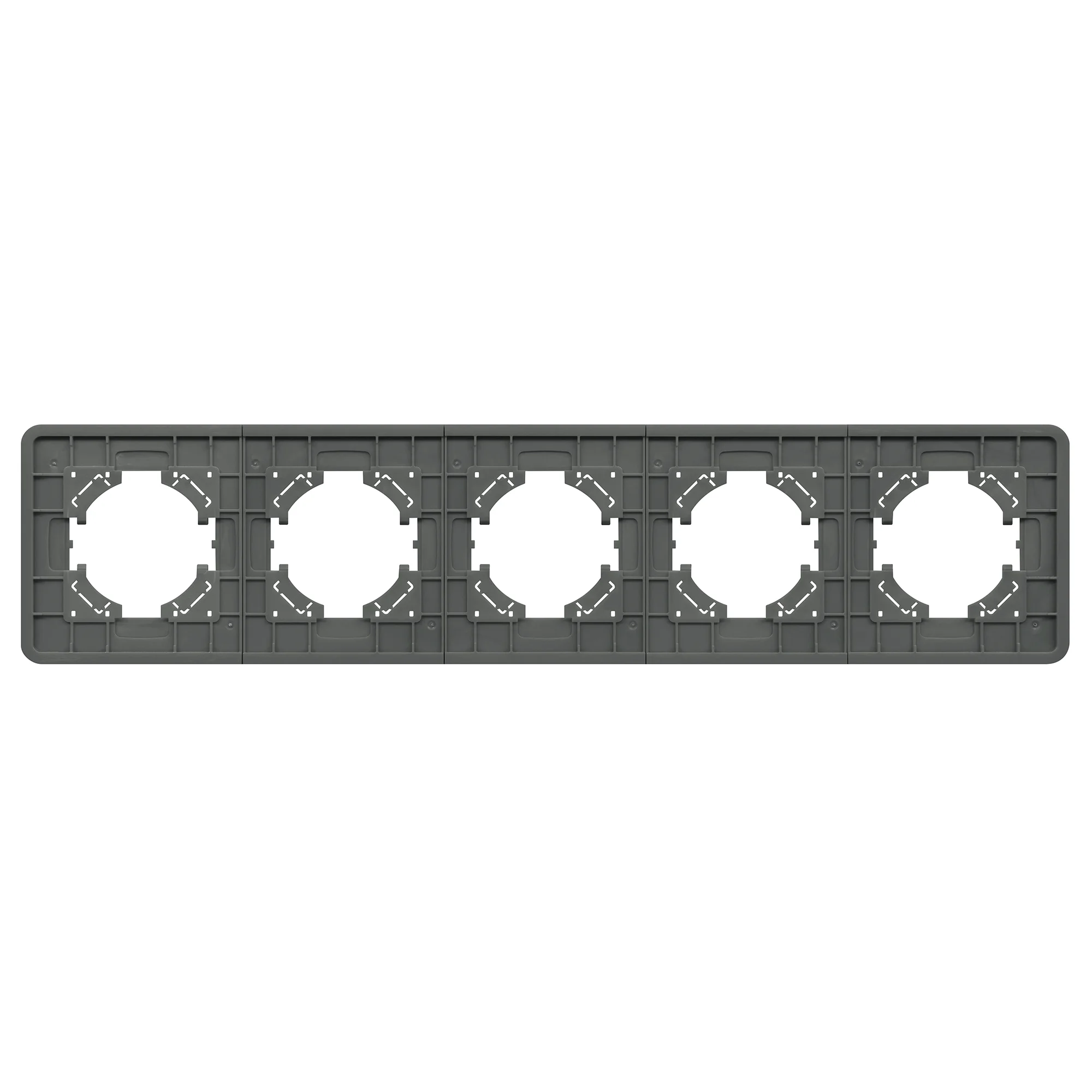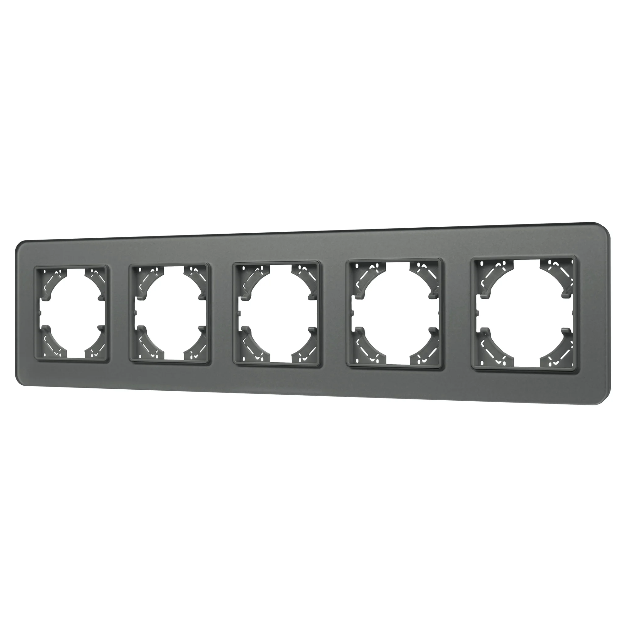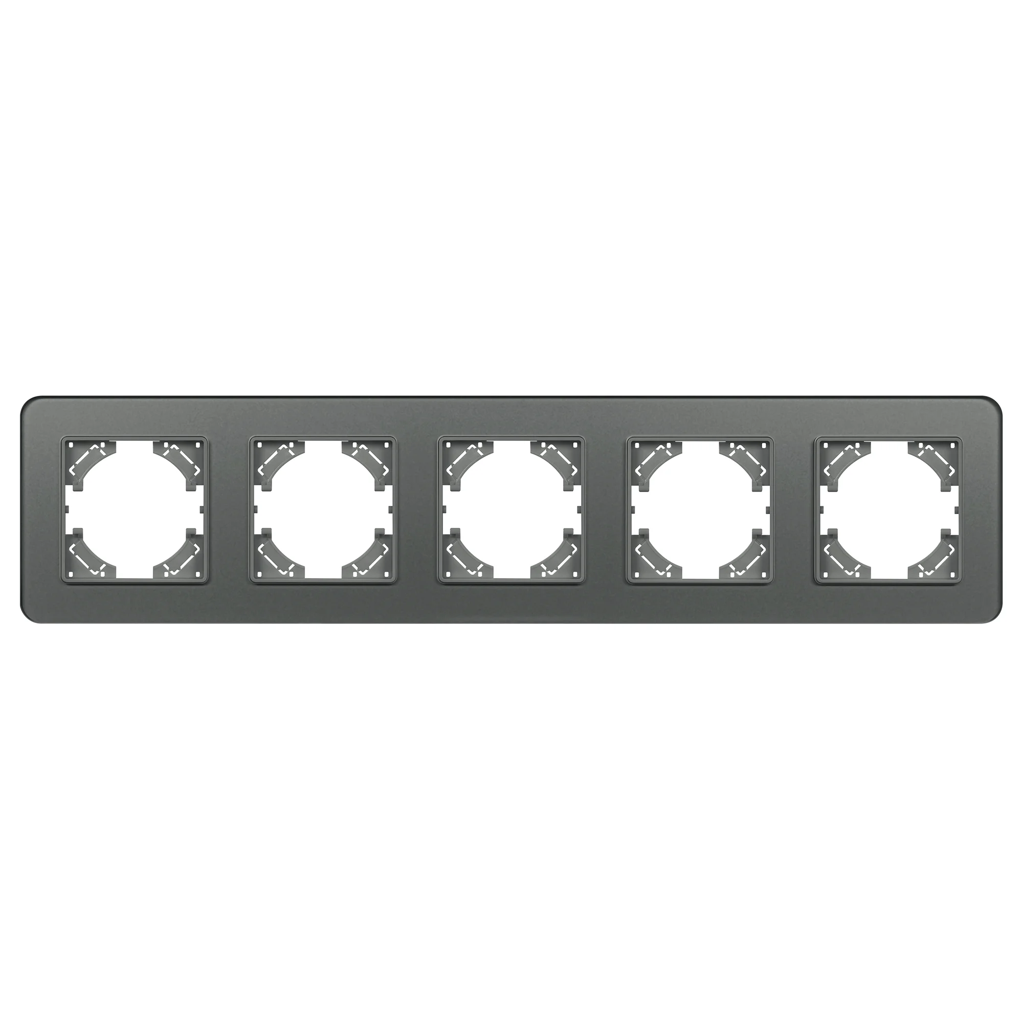 Рамка стеклянная на 5 постов, под встраиваемый механизм. Цвет — серый с Soft-Touch покрытием. Среднего уровня герметичности IP20. Ориентация монтажа — горизонтальная (основным ориентиром служат посадочные выступы для накладки механизма). Габаритные размеры: длина 370 мм, ширина 86 мм, высота 7 мм. Гарантийный срок 12 мес.