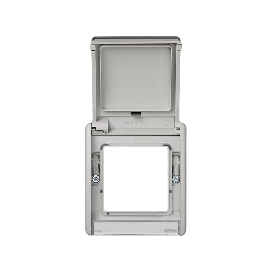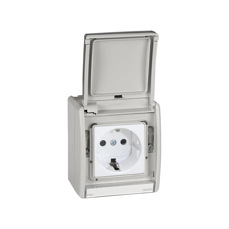Systeme Electric Этюд наруж Серый Блок Переключатель 1-клавишный + розетка с/з со шторками IP44