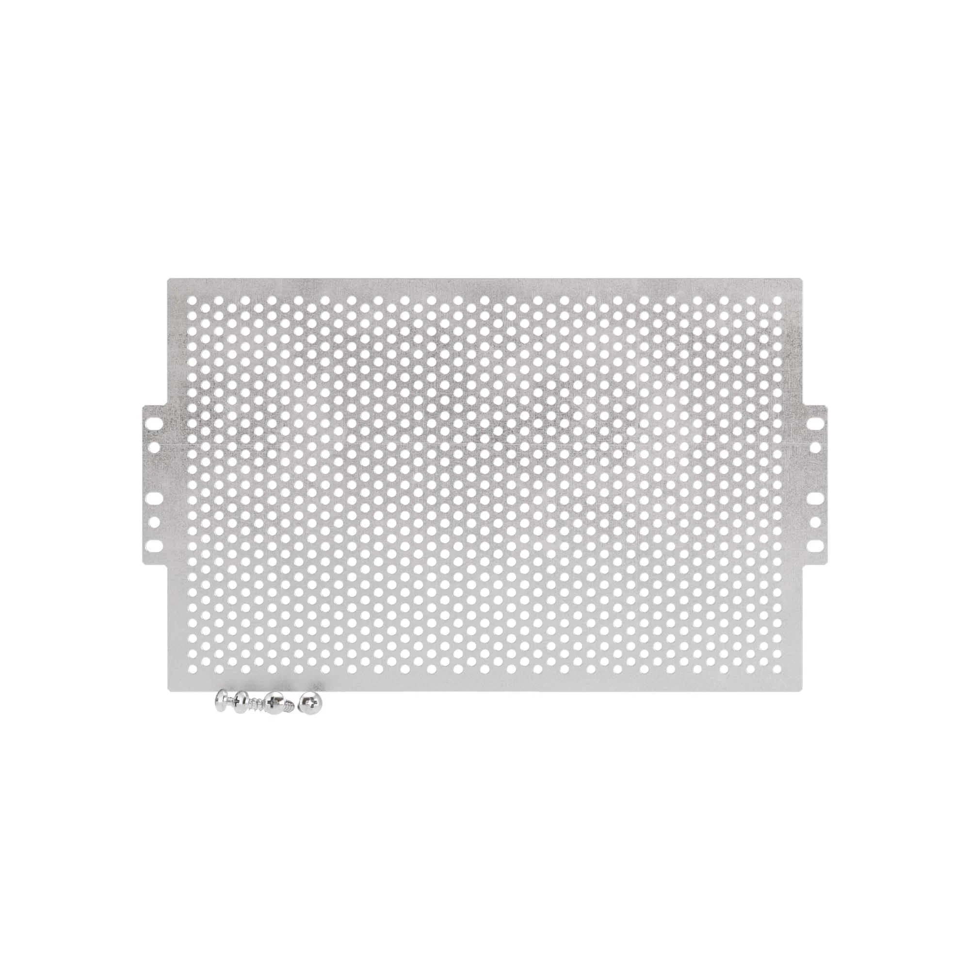 Предназначена для закрепления оборудования с помощью закладных гаек и/или самонарезащих винтов. Крепится к раме напольных распределительных и сетевых шкафов и/или к монтажным рейкам. Выполнена перфорация под закладные гайки (квадратные отверстия 9,5 мм) и саморезы (диам. 4 мм) с шагом 25 мм.