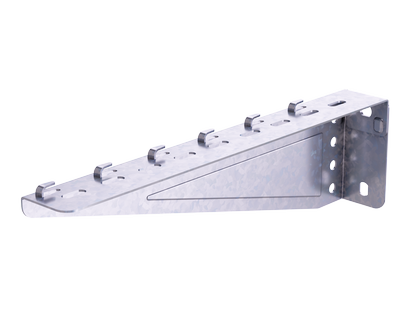 Применяется для монтажа трассы лотков с малой нагрузкой. Крепление к стене. Толщина стали 2,5 мм. 2 отверстия в основании. Совместима с лотками шириной 300 мм. Противокоррозионное цинкнаполненное покрытие повышает срок службы изделия в условиях агрессивных сред и высокой влажности.