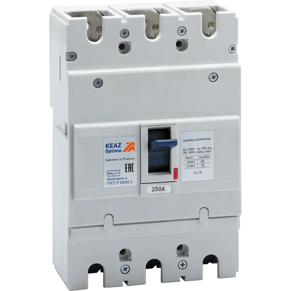 Блочный автоматический 3 полюсный выключатель переменного тока с предельной коммутационной способностью при переменном токе 40 кА на номинальный ток 250 А .