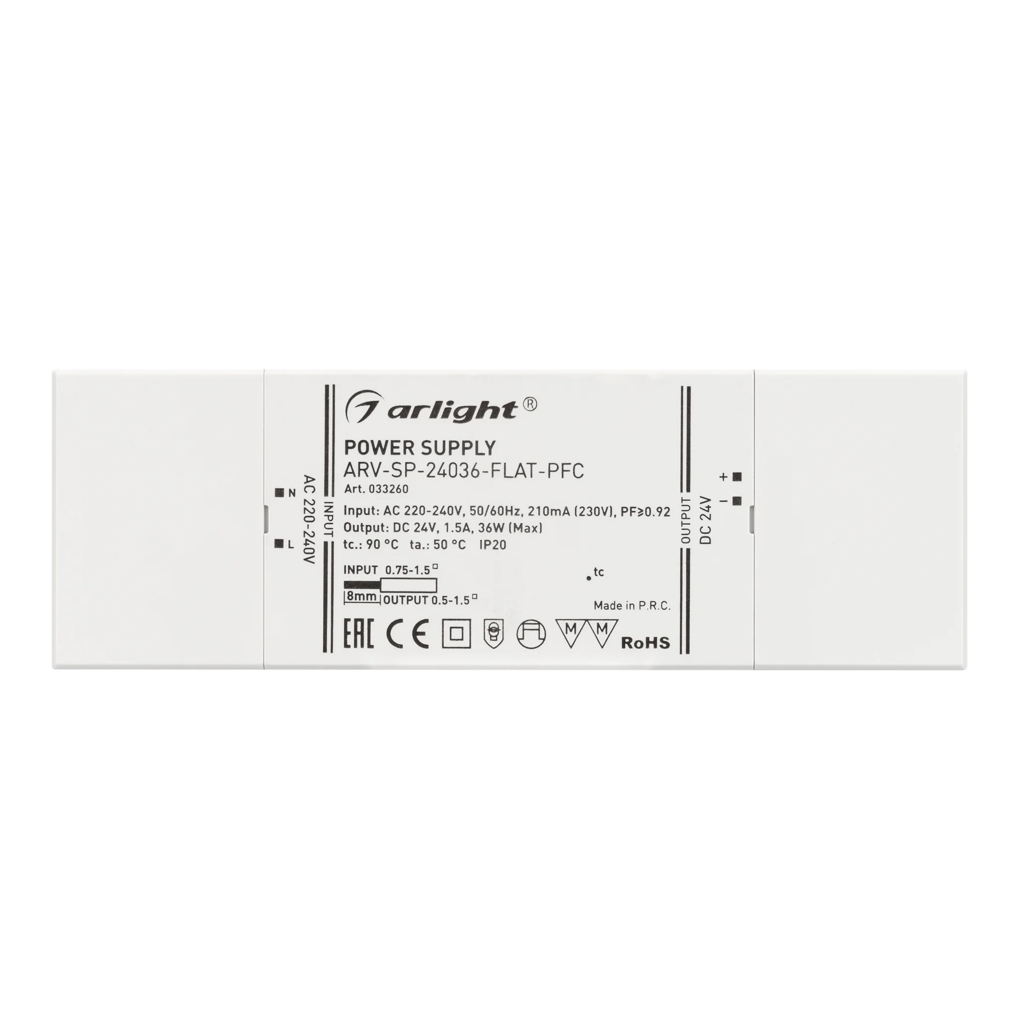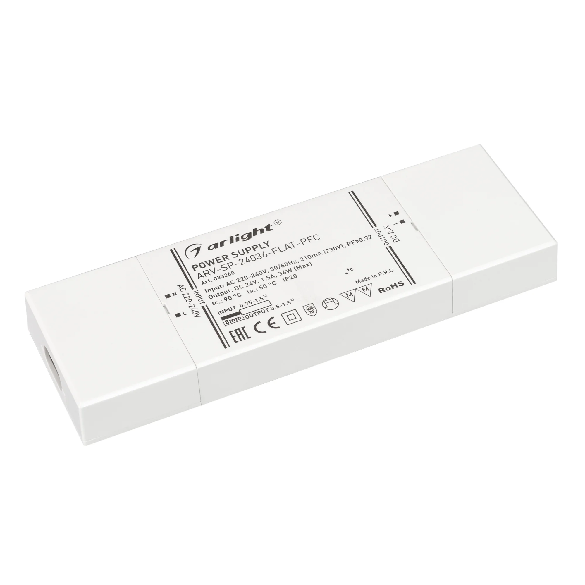 Источник напряжения с гальванической развязкой для светодиодных изделий. Входное напряжение 220-240 VAC. Выходные параметры: 24 В, 1.5 А, 36 Вт. Встроенный PFC >0.92. Сверхтонкий пластиковый корпус IP20. Габаритные размеры длина 170 мм, ширина 57 мм, высота 18 мм. Гарантийный срок 5 лет.