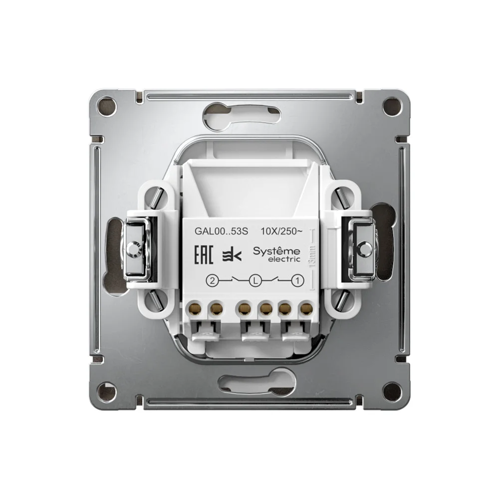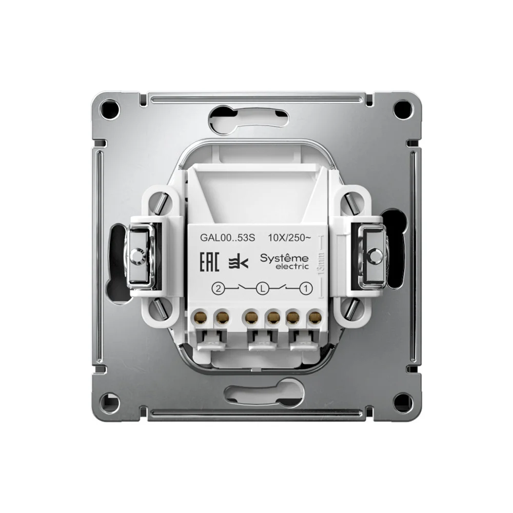 Механизм с быстрозажимными клеммами Systeme Electric (ранее Schneider Electric) серии AtlasDesign в цвете шампань 1-клавишного переключателя с подсветкой подходит для сетей 250 В, на ток 10 А. С помощью новых быстрозажимных клемм монтаж розеток и выключателей стал намного быстрее. Теперь подключение не требует использования отвертки. Лицевые детали из качественного ABS-пластика, устойчивого к царапинам и УФ-излучению.