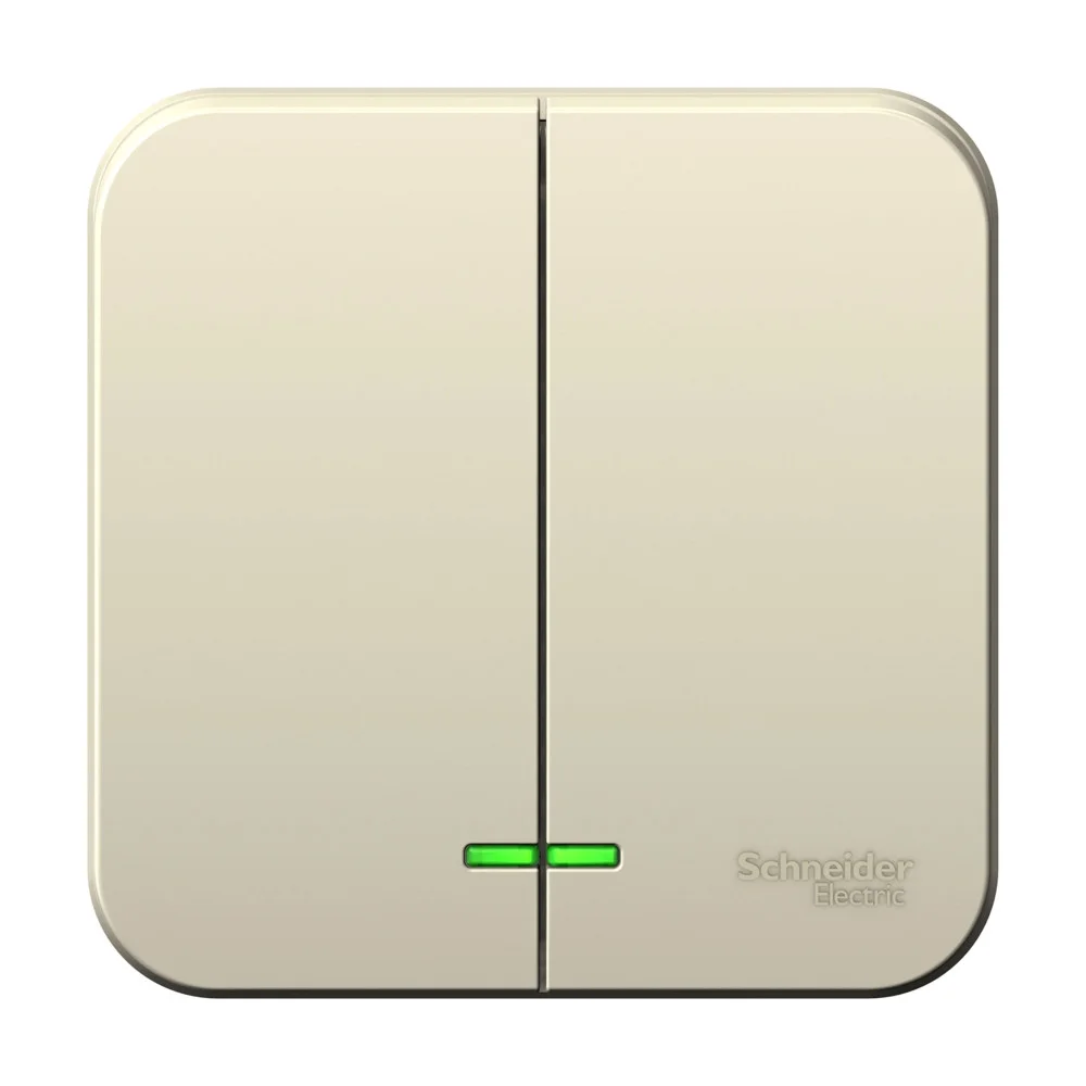 Выключатель Systeme Electric (ранее Schneider Electric) BLANCA (молочный, открытой установки) двухклавишный предназначен для сетей до 250В, на ток до 10А. Подсветка делает его легко находимым в отсутствие освещения. Двухклавишный выключатель позволяет управлять двумя источниками света из одной точки.