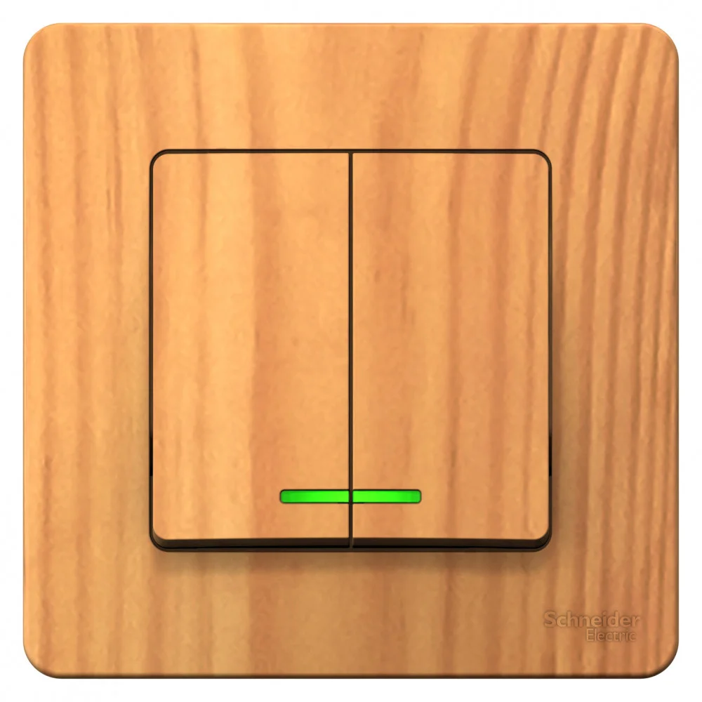 Выключатель Systeme Electric (ранее Schneider Electric) BLANCA (ясень, скрытой установки) двухклавишный предназначен для сетей до 250В, на ток до 10А. Подсветка делает его легко находимым в отсутствие освещения. Двухклавишный выключатель позволяет управлять двумя источниками света из одной точки. Изделия цвета Ясень обладают уникальным рисунком, напоминающим древесный сруб.