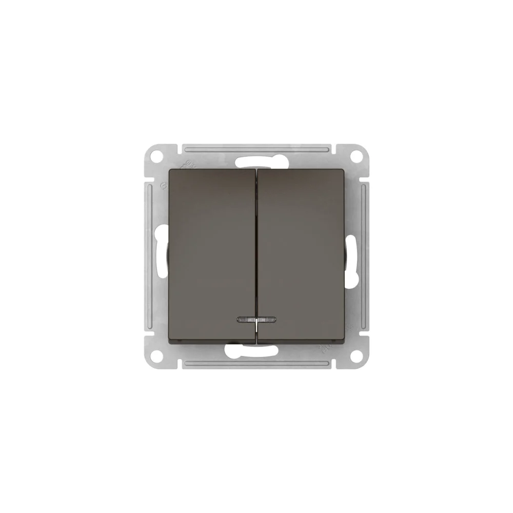 Механизм с быстрозажимными клеммами Systeme Electric (ранее Schneider Electric) серии AtlasDesign в цвете мокко 2-клавишного выключателя с подсветкой подходит для сетей 250 В, на ток 10 А. С помощью новых быстрозажимных клемм монтаж розеток и выключателей стал намного быстрее. Теперь подключение не требует использования отвертки. Лицевые детали из качественного ABS-пластика, устойчивого к царапинам и УФ-излучению.