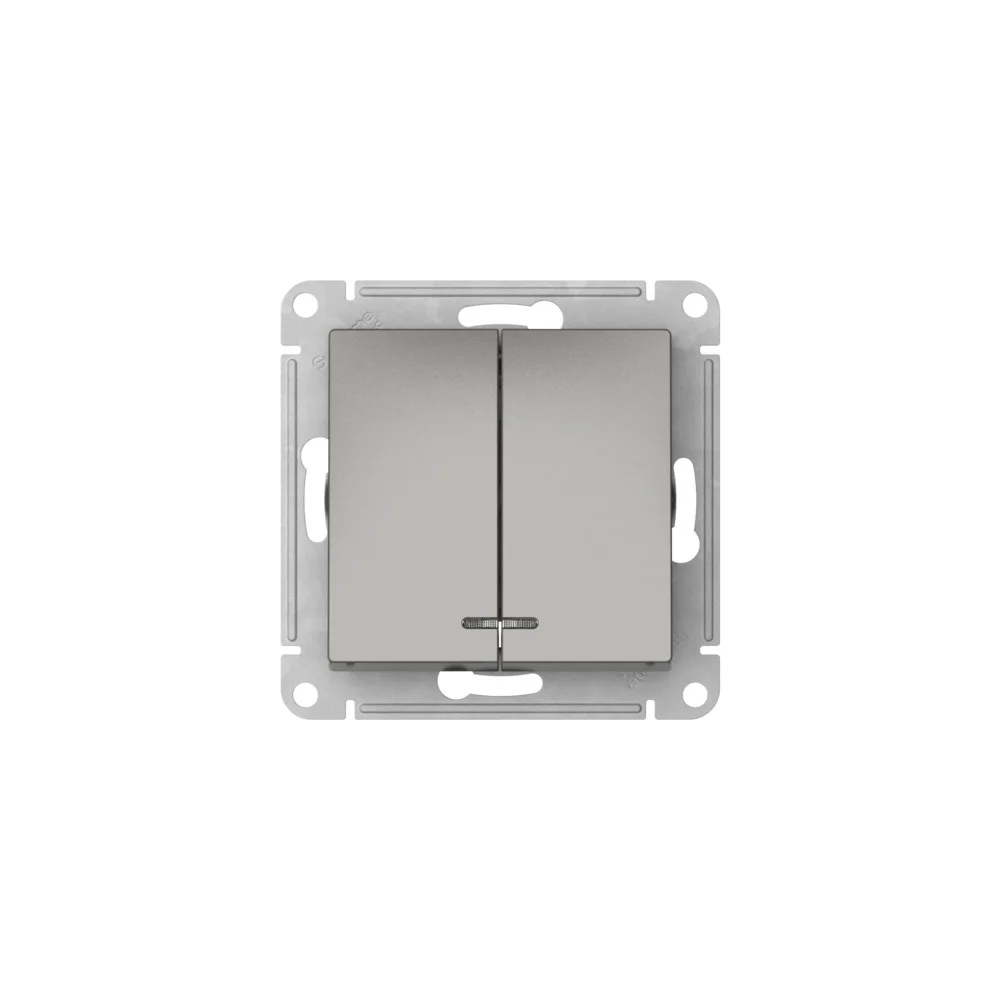 Механизм с быстрозажимными клеммами Systeme Electric (ранее Schneider Electric) серии AtlasDesign в цвете сталь 2-клавишного выключателя с подсветкой подходит для сетей 250 В, на ток 10 А. С помощью новых быстрозажимных клемм монтаж розеток и выключателей стал намного быстрее. Теперь подключение не требует использования отвертки. Лицевые детали из качественного ABS-пластика, устойчивого к царапинам и УФ-излучению.