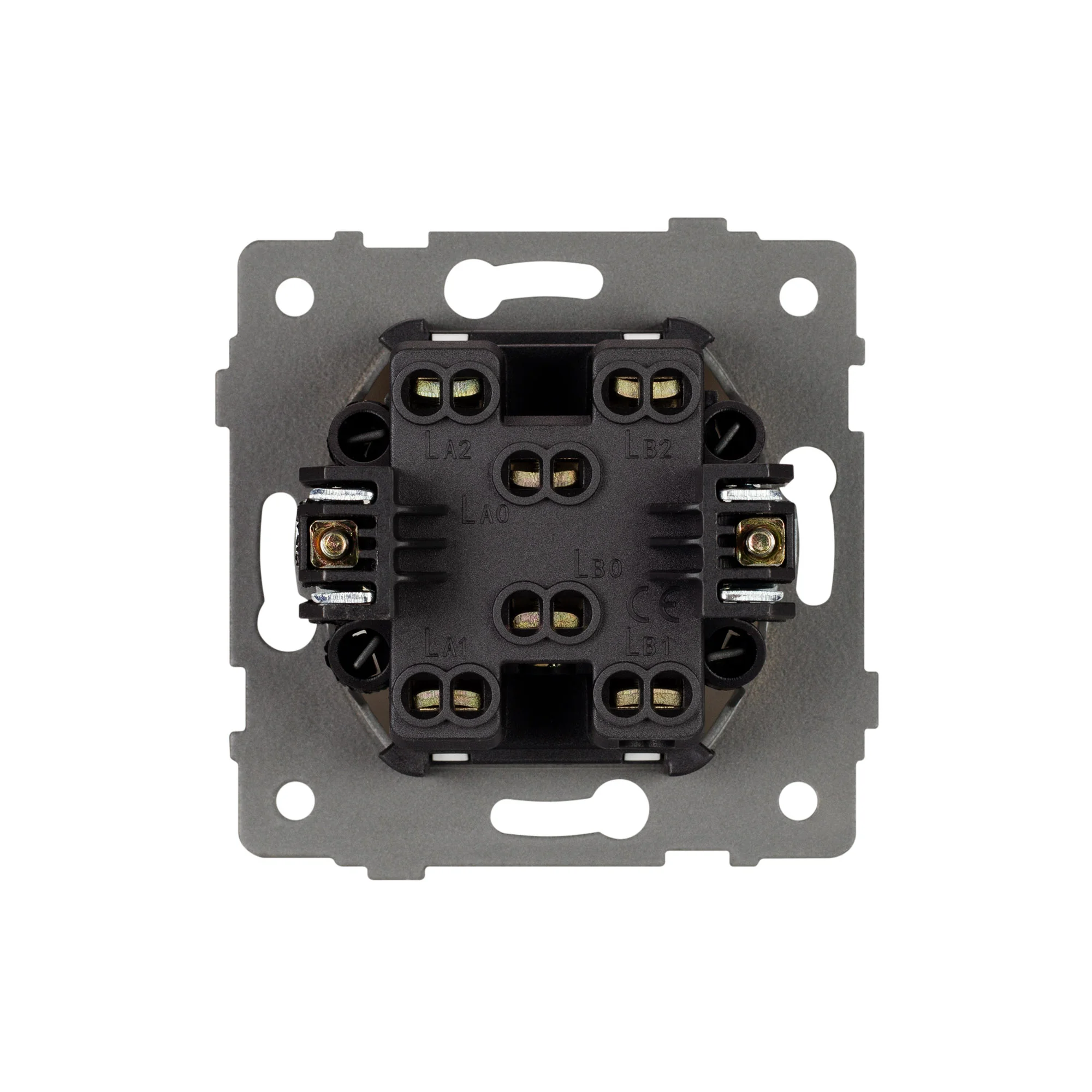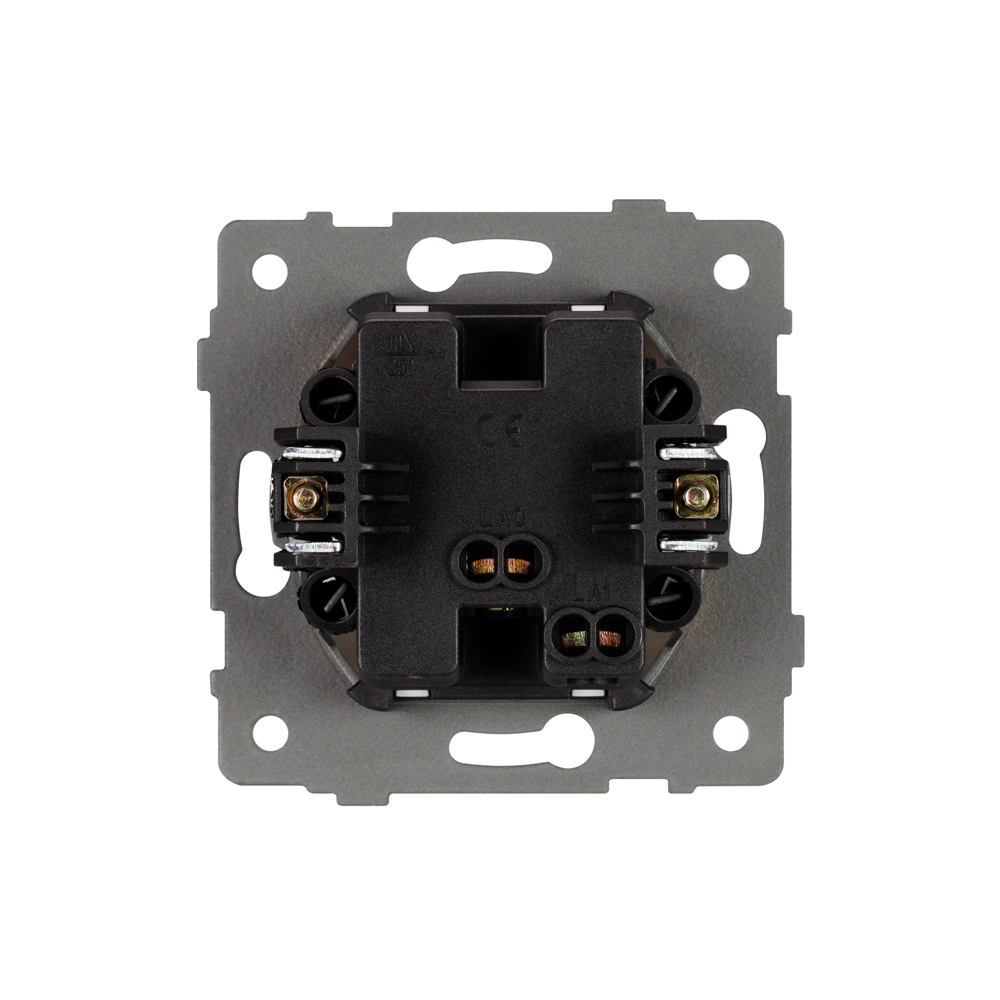 Механизм выключателя света клавишный на 1 пост 2 возвратные клавиши. Цвет — черный. Без фронтальной рамки. Уровень пылевлагозащиты IP20. Выключатель устанавливается в стандартный круглый подрозетник. Габаритные размеры: длина 71 мм, ширина 71 мм, высота 52 мм. Гарантийный срок 10 лет.