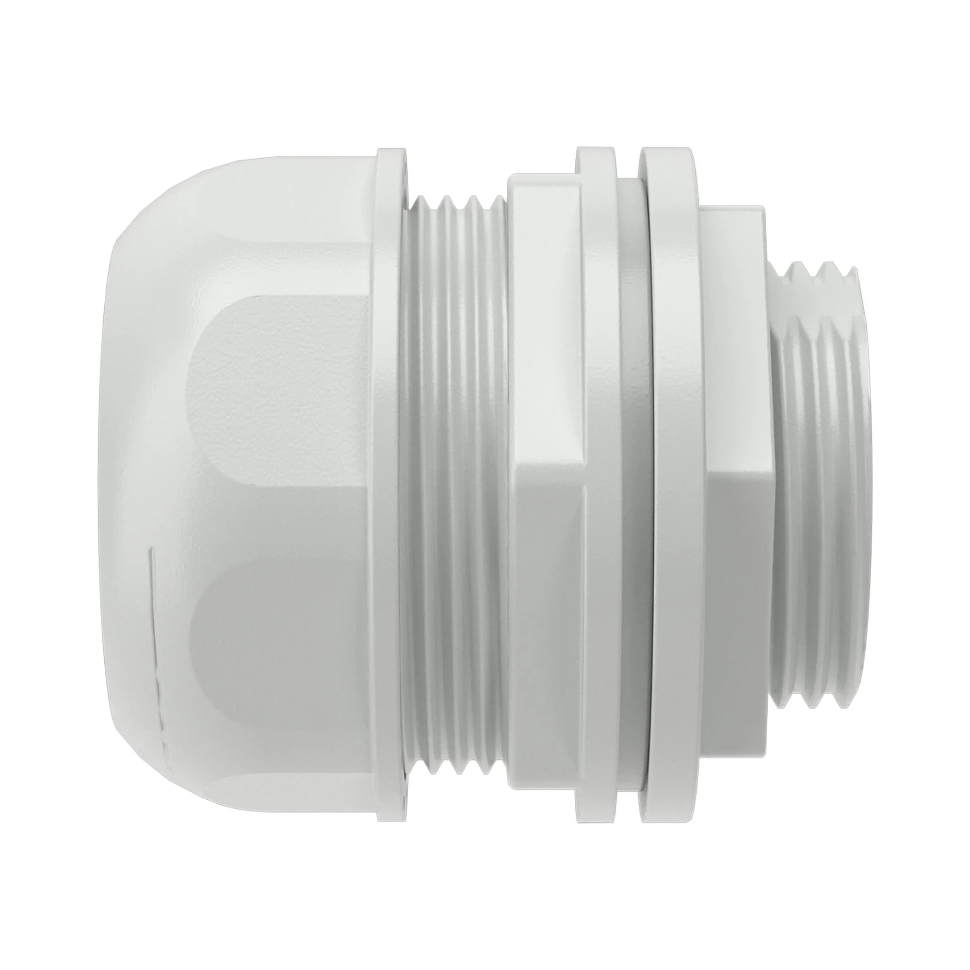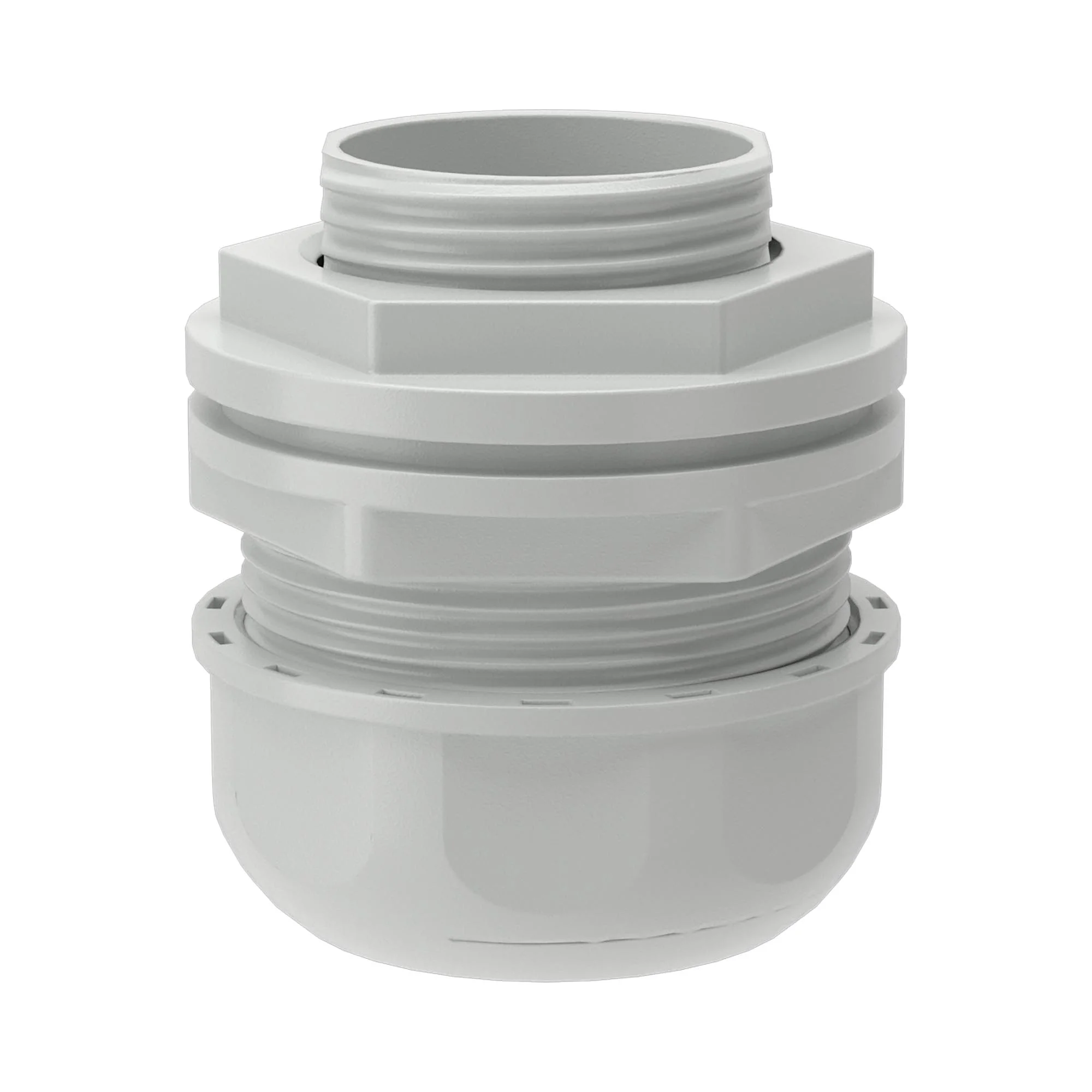 Переходник «Армированная труба — коробка» для герметичного соединения гибких армированных труб с ответвительными коробками, корпусами шкафов и боксов. Диаметр — 22 мм. Материал: полипропилен. Степень пыле- и влагозащиты IP65. Цвет серый RAL 7035. Элемент системы может эксплуатироваться при широком диапазоне температур: от –25°С до +60 °С.