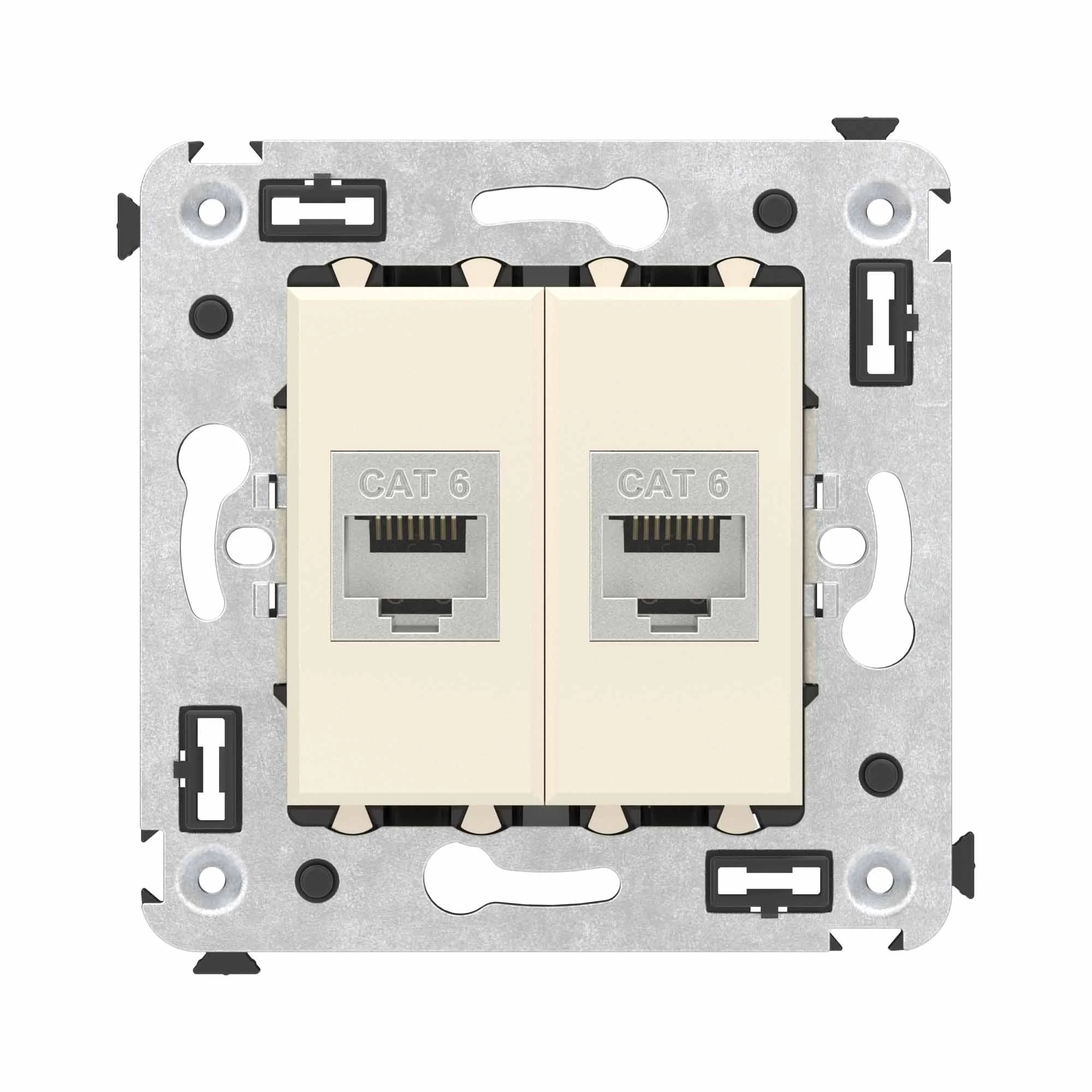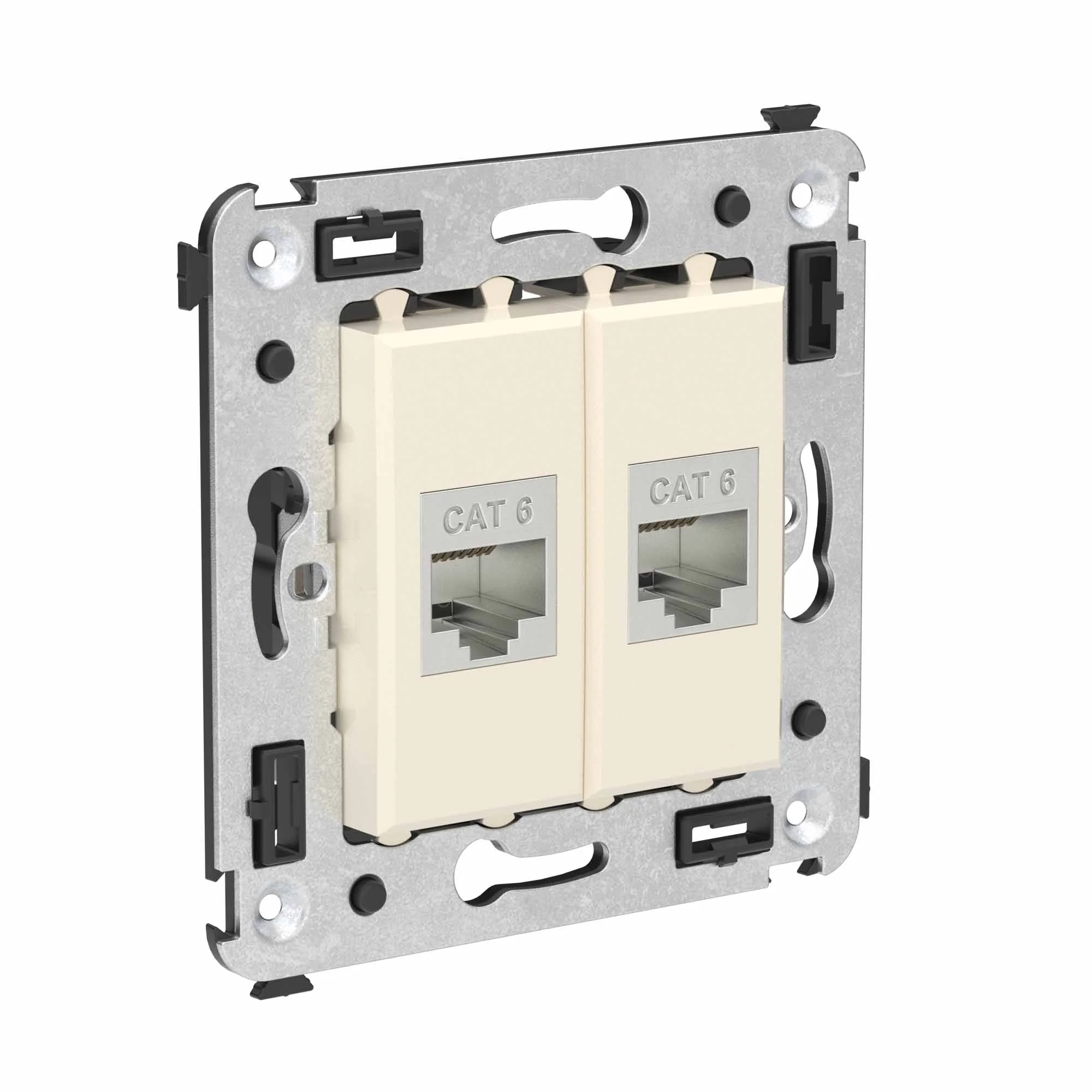 DKC Avanti Компьютерная розетка RJ-45 без шторки в стену, кат.6 двойная экранированная, «Ванильная дымка»