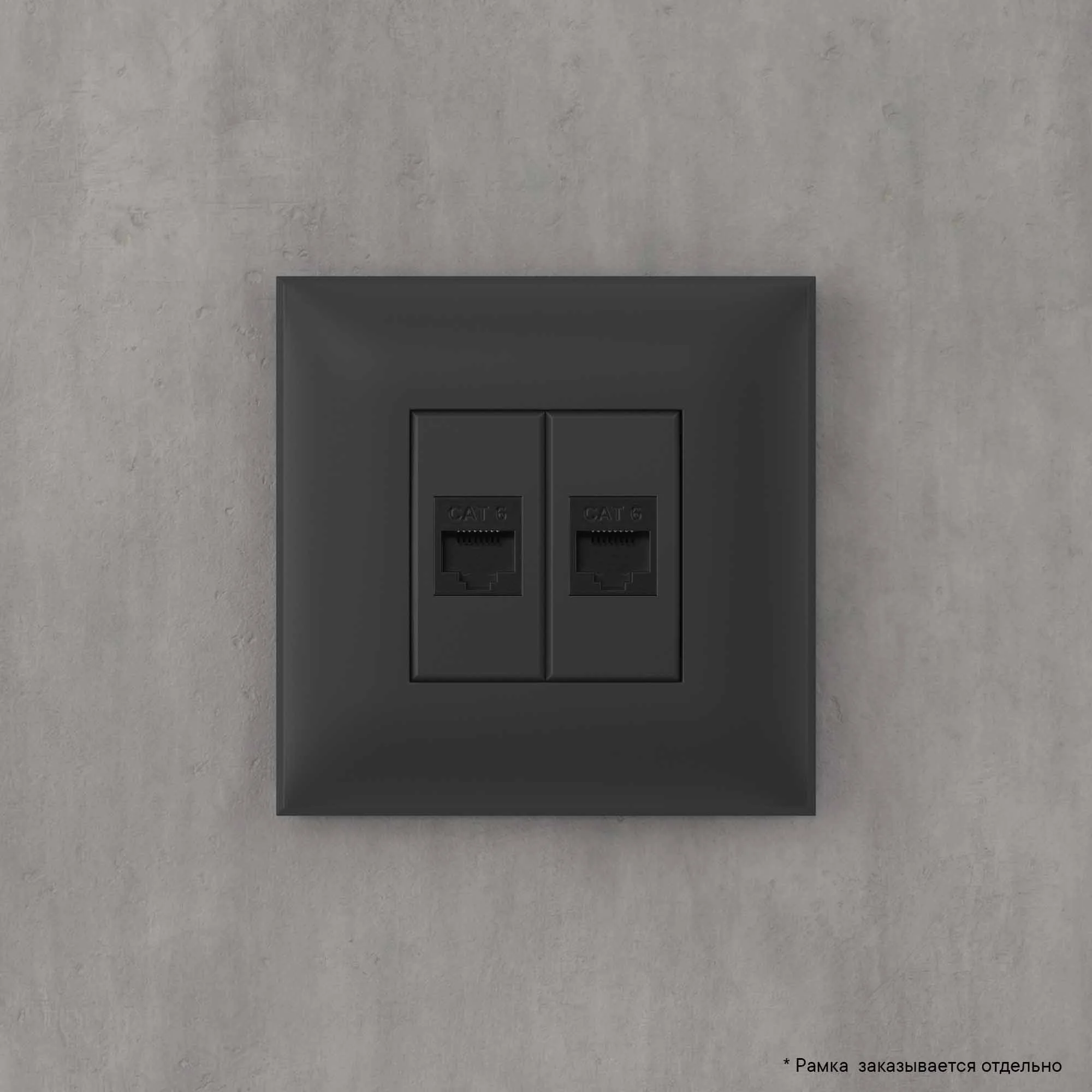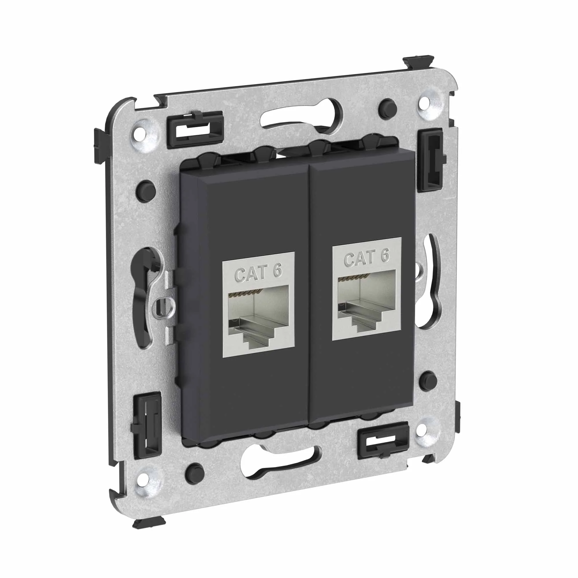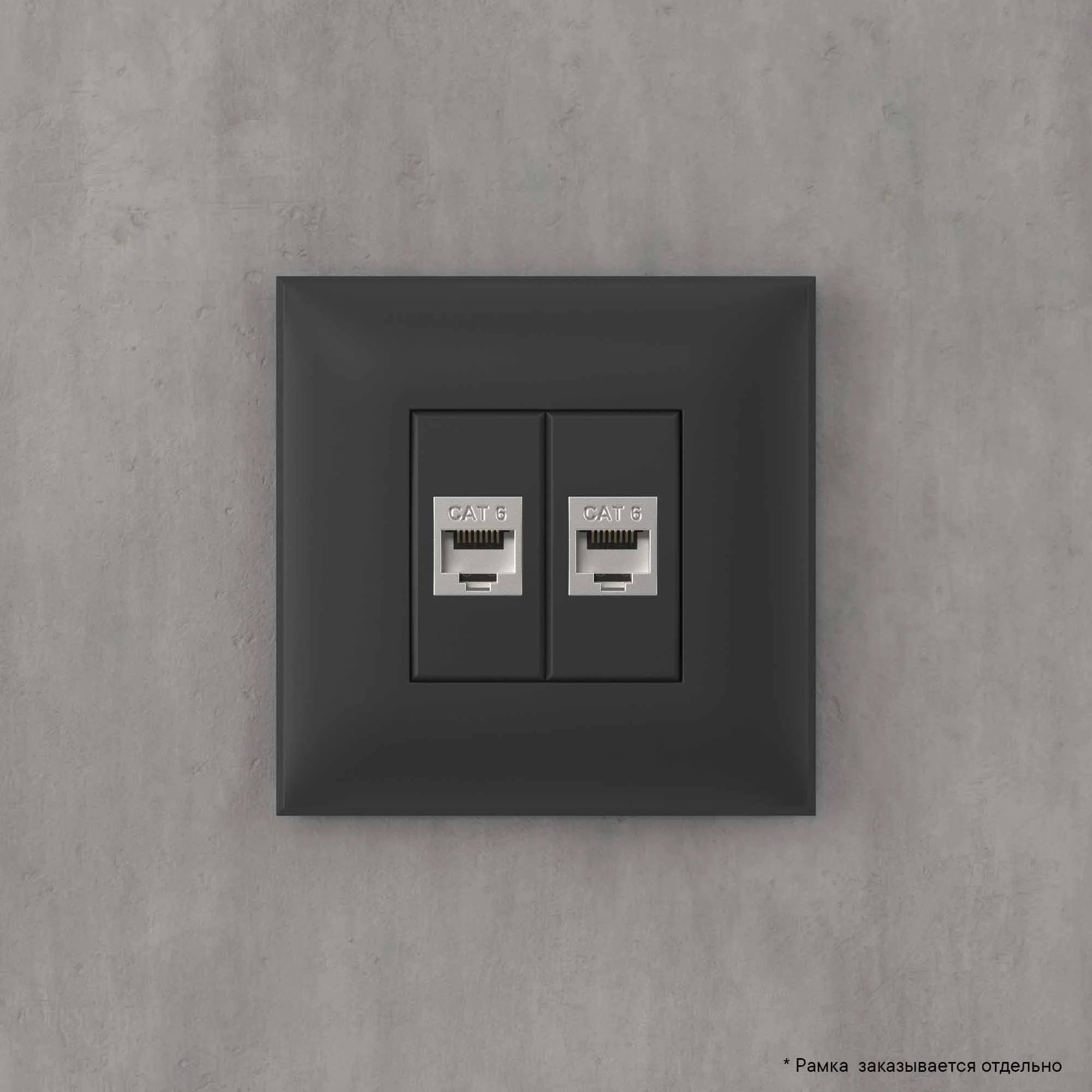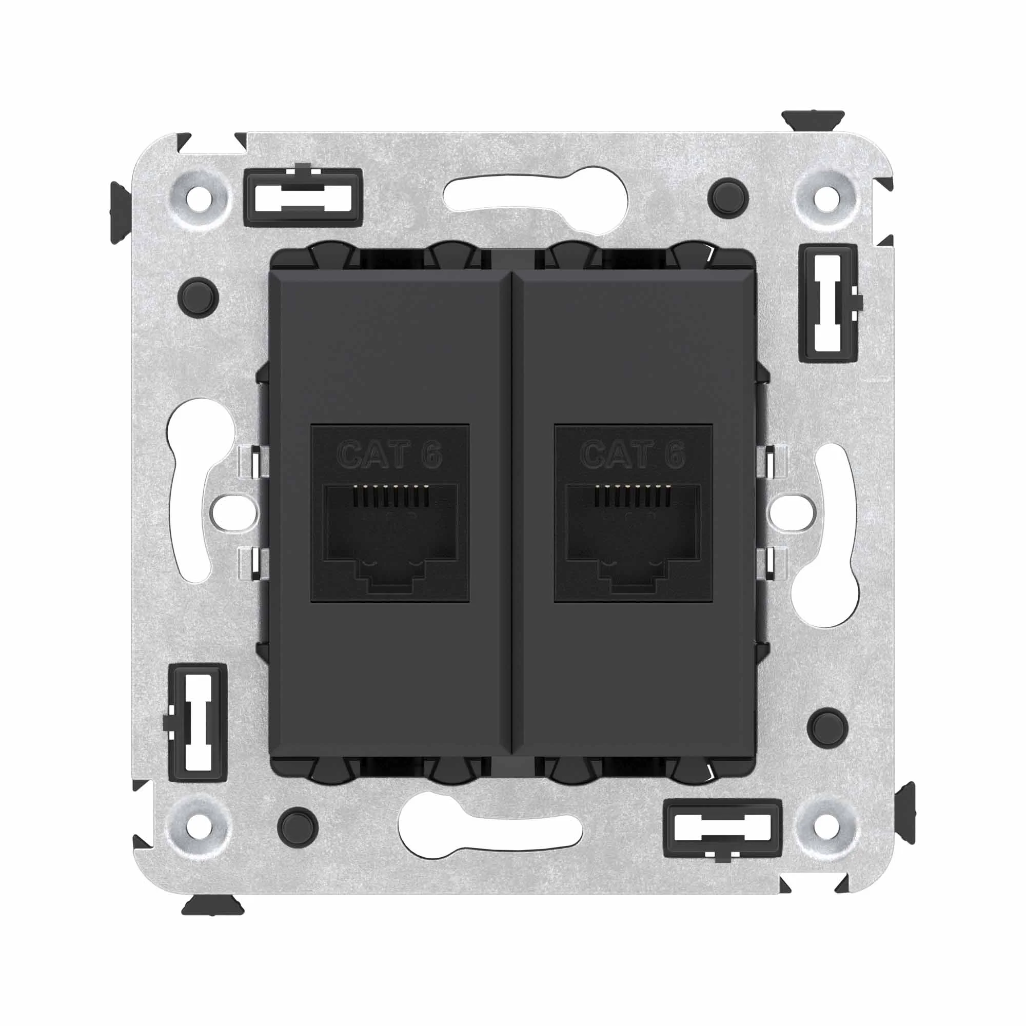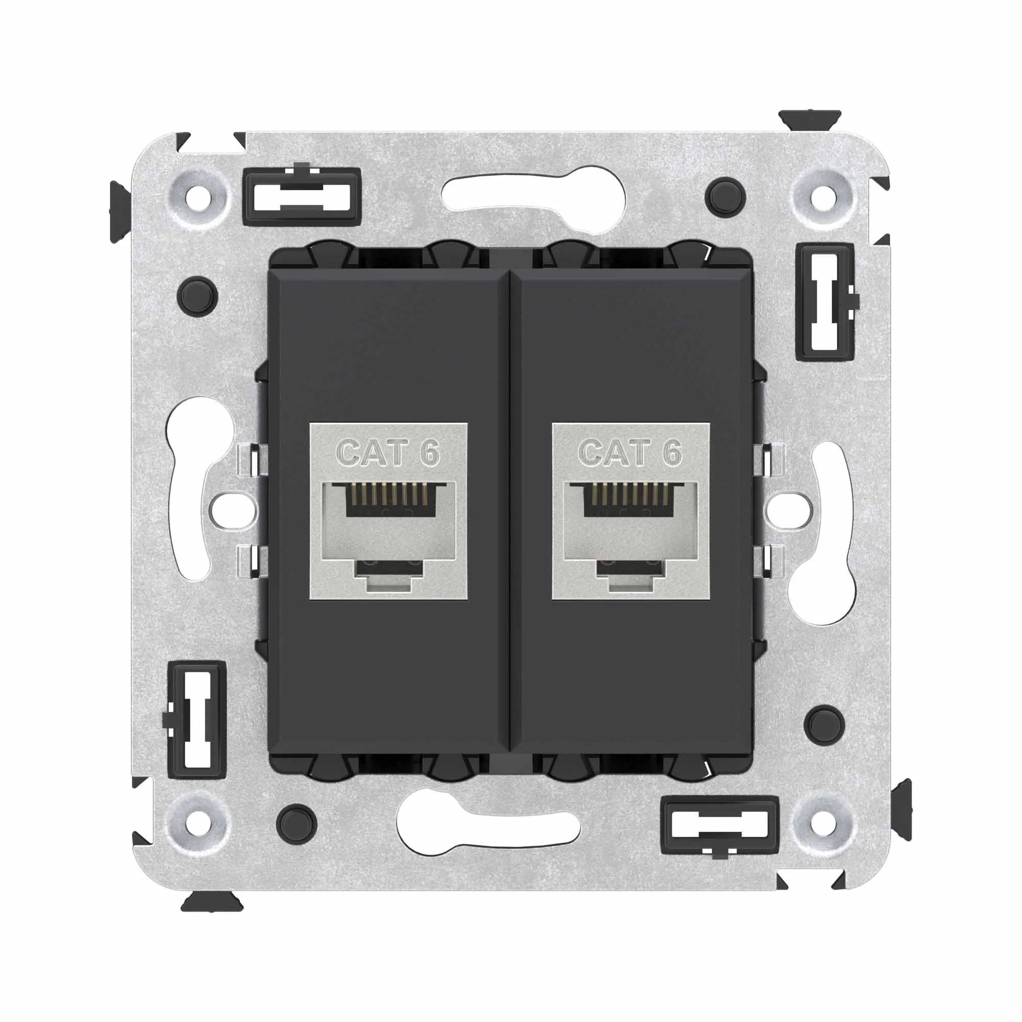 DKC Avanti Компьютерная розетка RJ-45 без шторки в стену, кат.6 двойная, «Черный матовый»