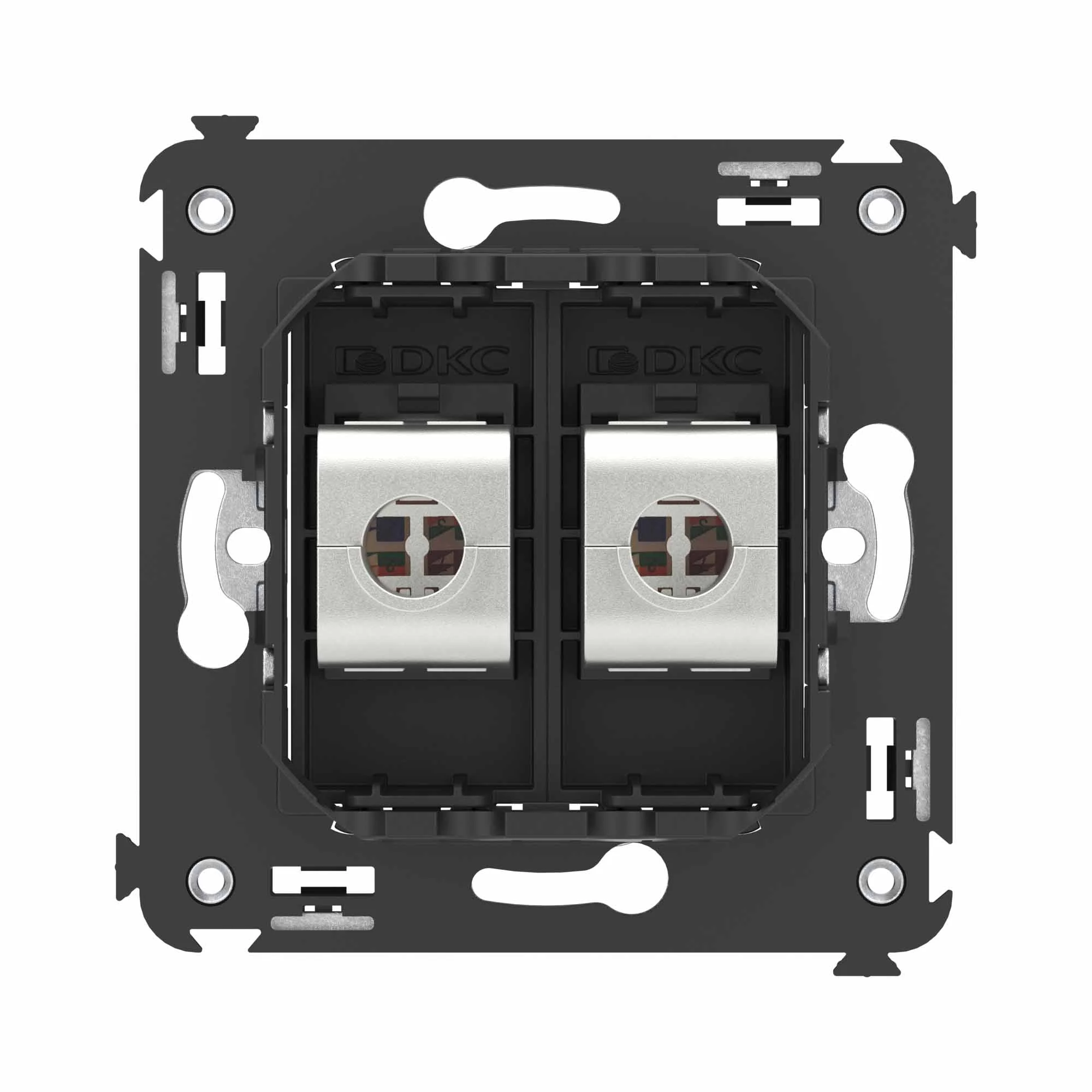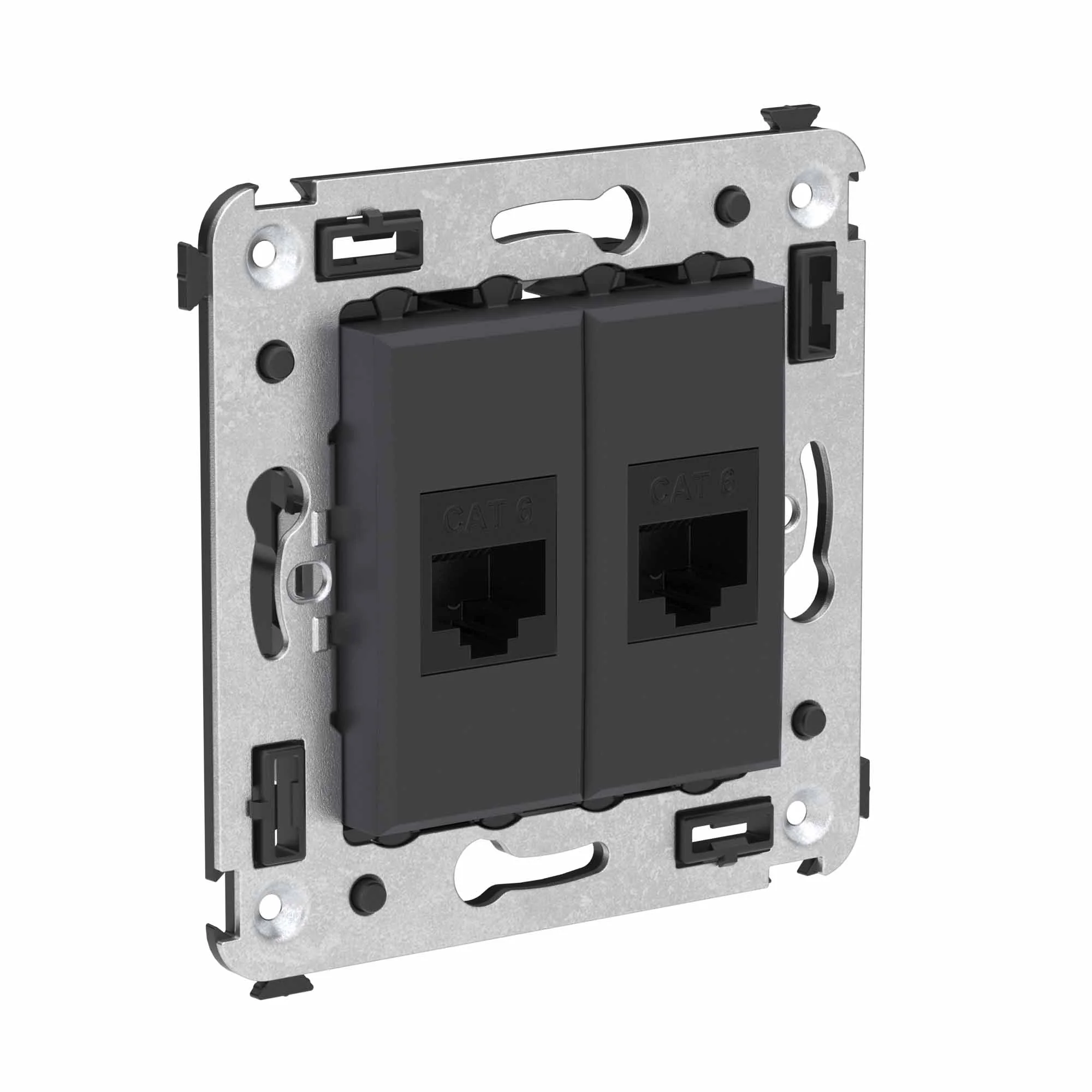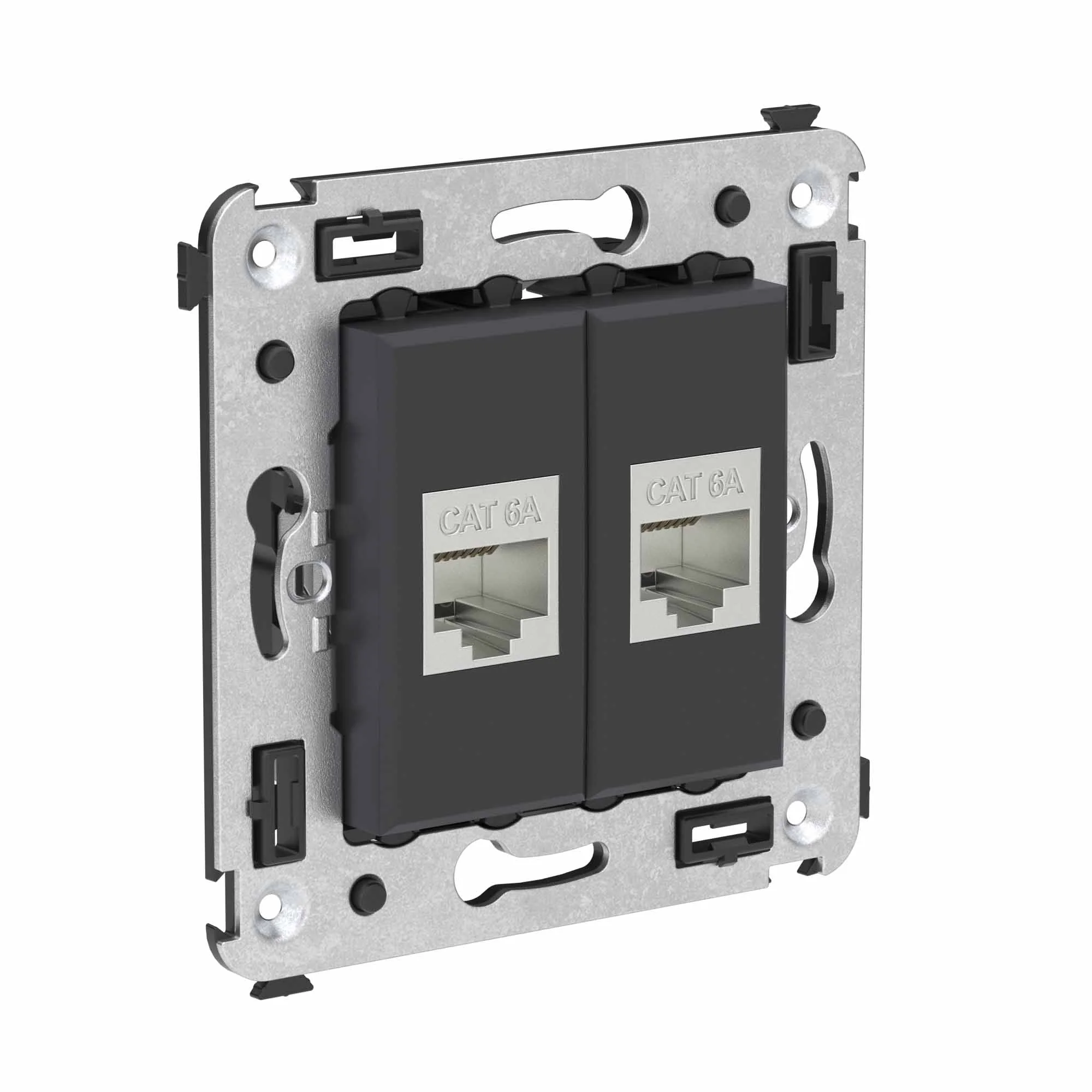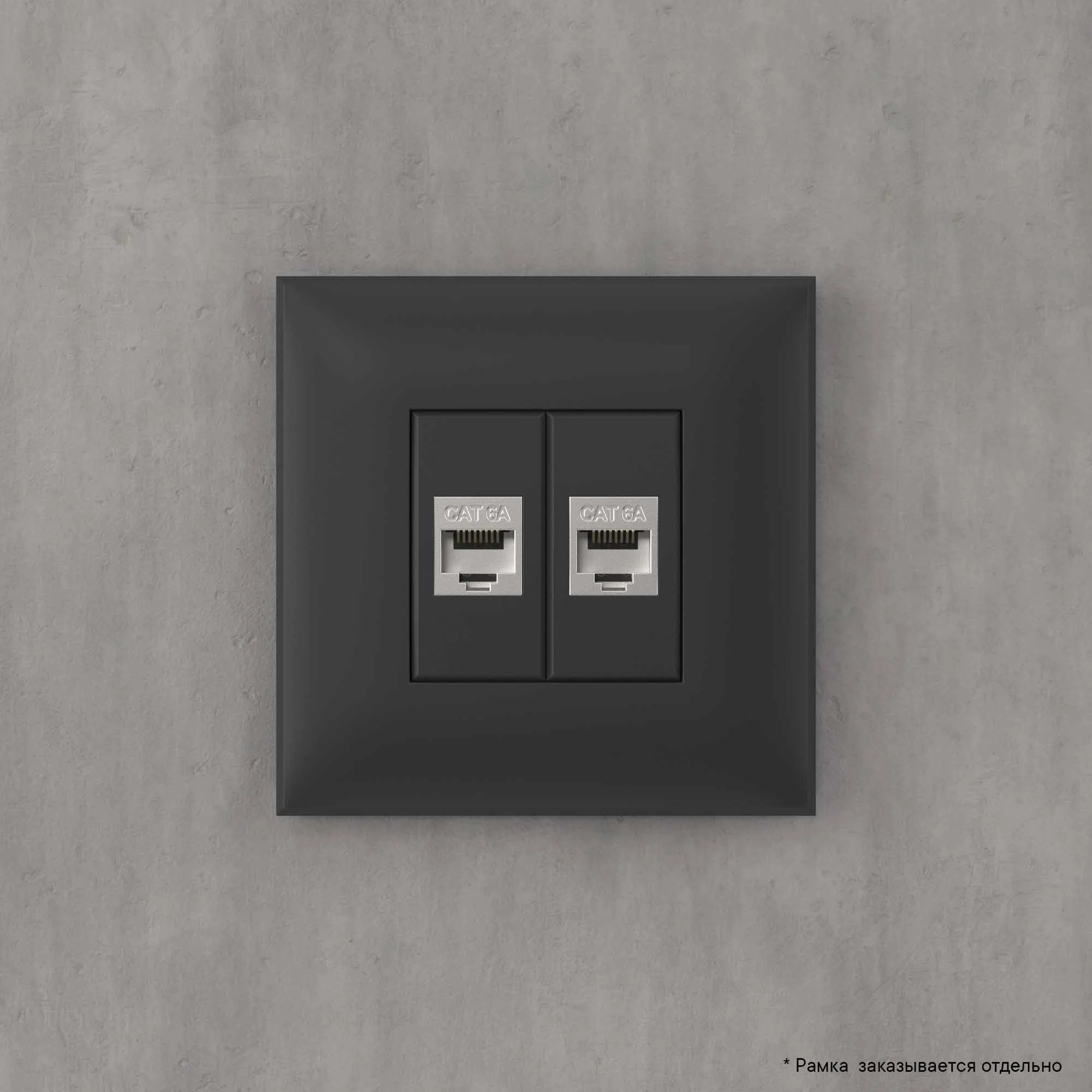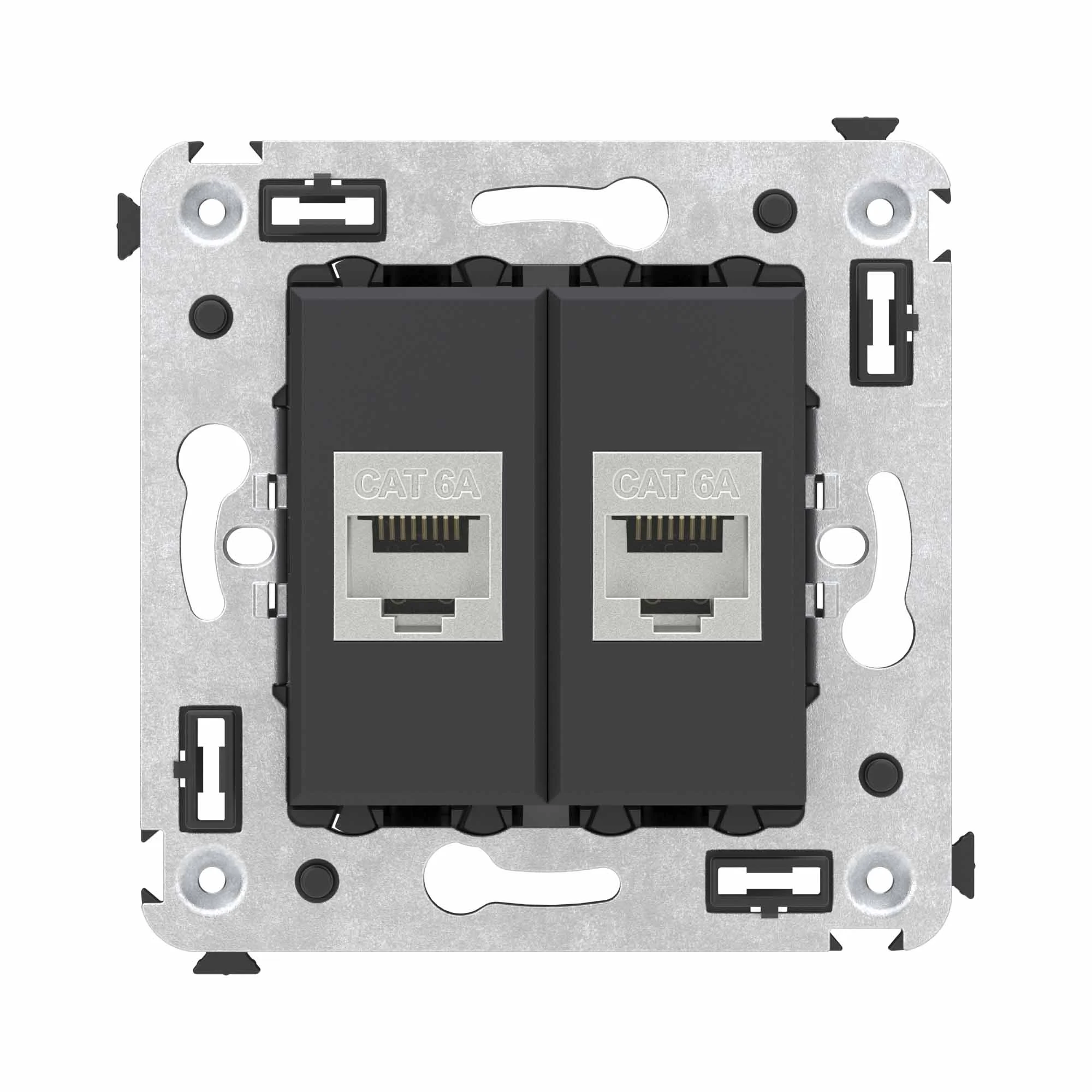 DKC Avanti Компьютерная розетка RJ-45 без шторки в стену, кат.6А двойная экранированная, «Черный матовый»