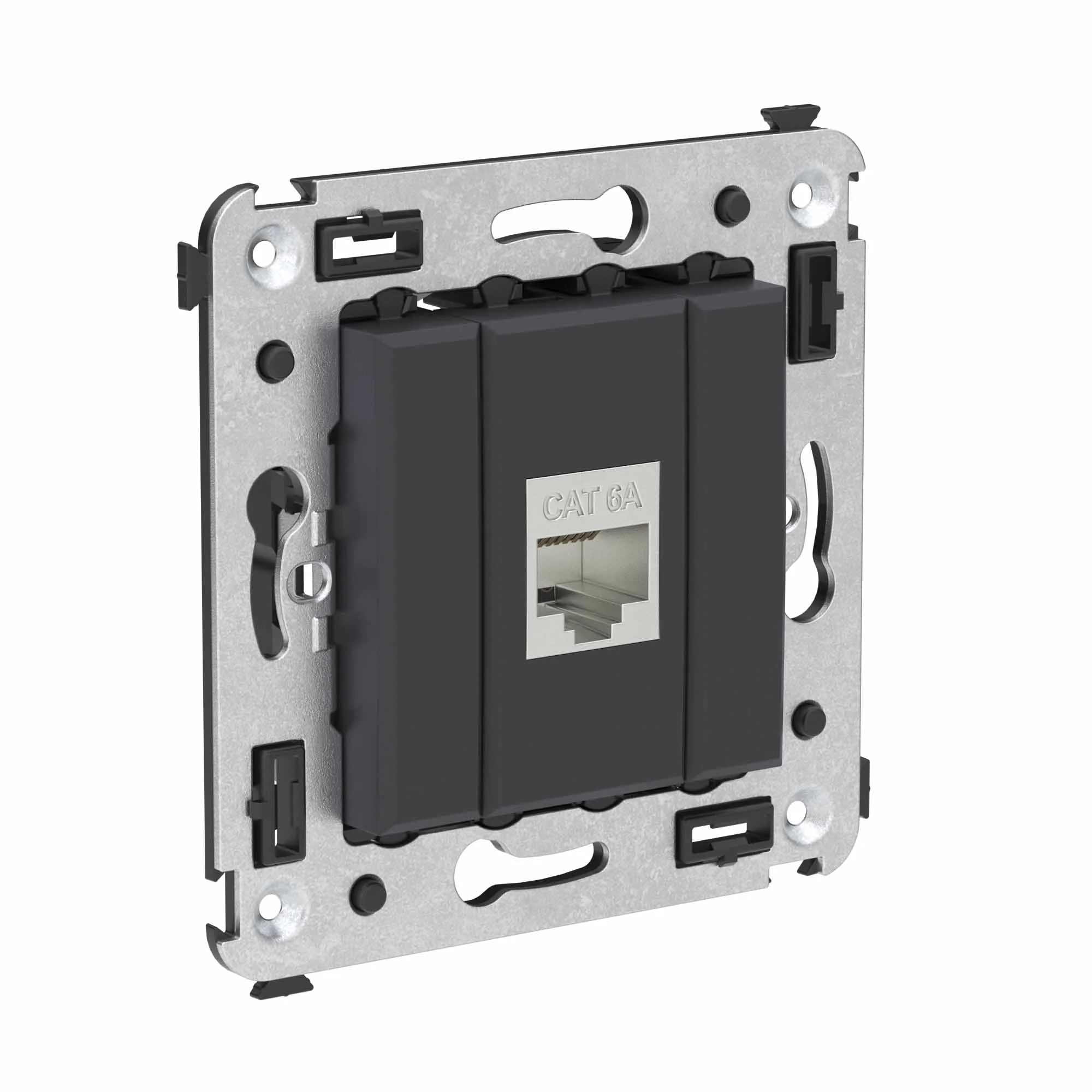 DKC Avanti Компьютерная розетка RJ-45 без шторки в стену, кат.6A одинарная экранированная, «Черный матовый»