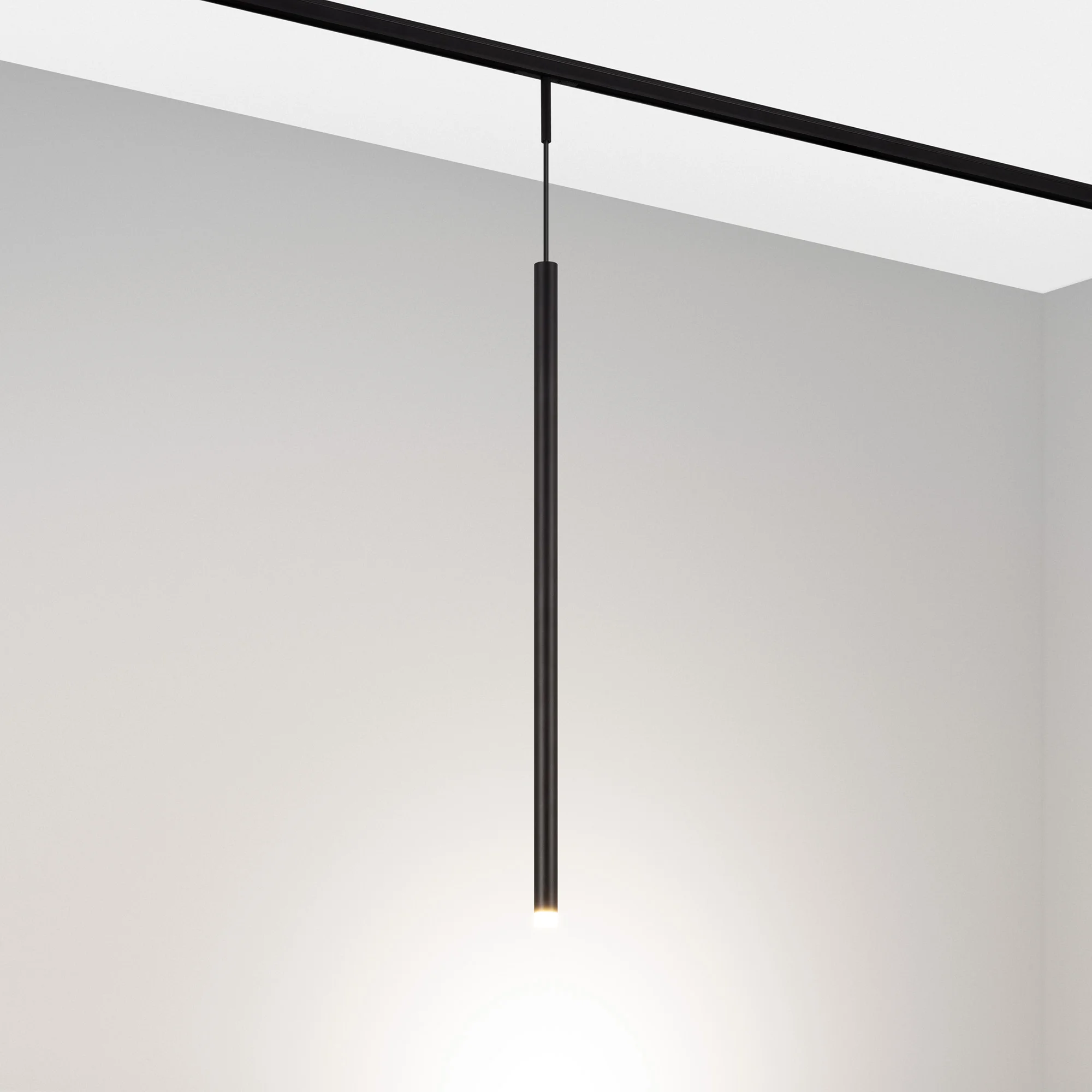 Светильник для магнитных треков MAG-Orient. Мощность 3 Вт, св. поток 150 лм, 50 лм/Вт, 3000 K, CRI>80, угол 20°, Черный цилиндрический корпус из металл, степень защиты IP20. Размер: длина 500 мм, диаметр 20 мм. Длина подвеса 1000мм. Подвес регулируемый.