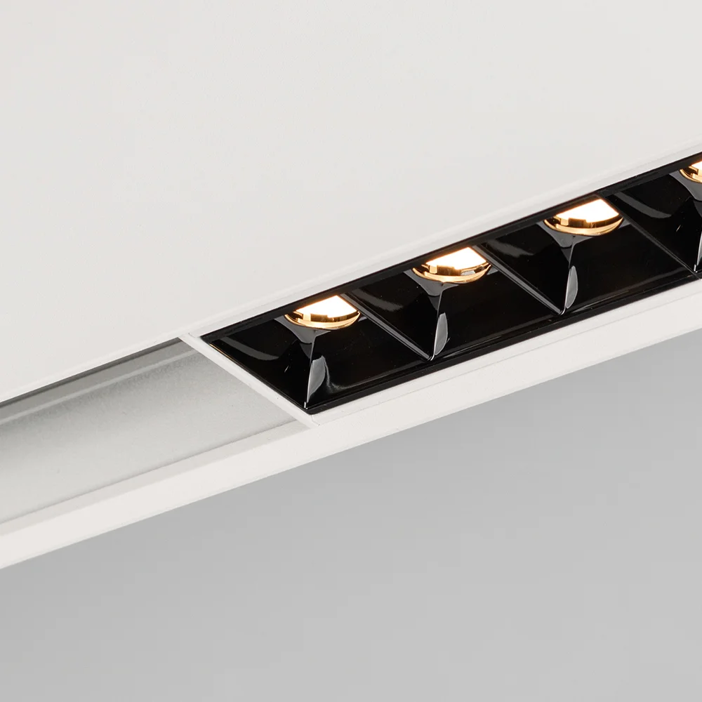 Светильник для магнитных треков шириной 45мм, 6Вт. Цвет свечения ТЕПЛЫЙ 3000K, световой поток 600лм, угол 100°, CRI>90. Корпус прямоугольный, металл, цвет белый, IP20. Размеры LxWxH 204x35x43мм. Входное напряжение DC24V, мощность 6Вт.Драйвер DС24V/AC230V поставляется отдельно. Диммируется только с 026407(1), 027633.