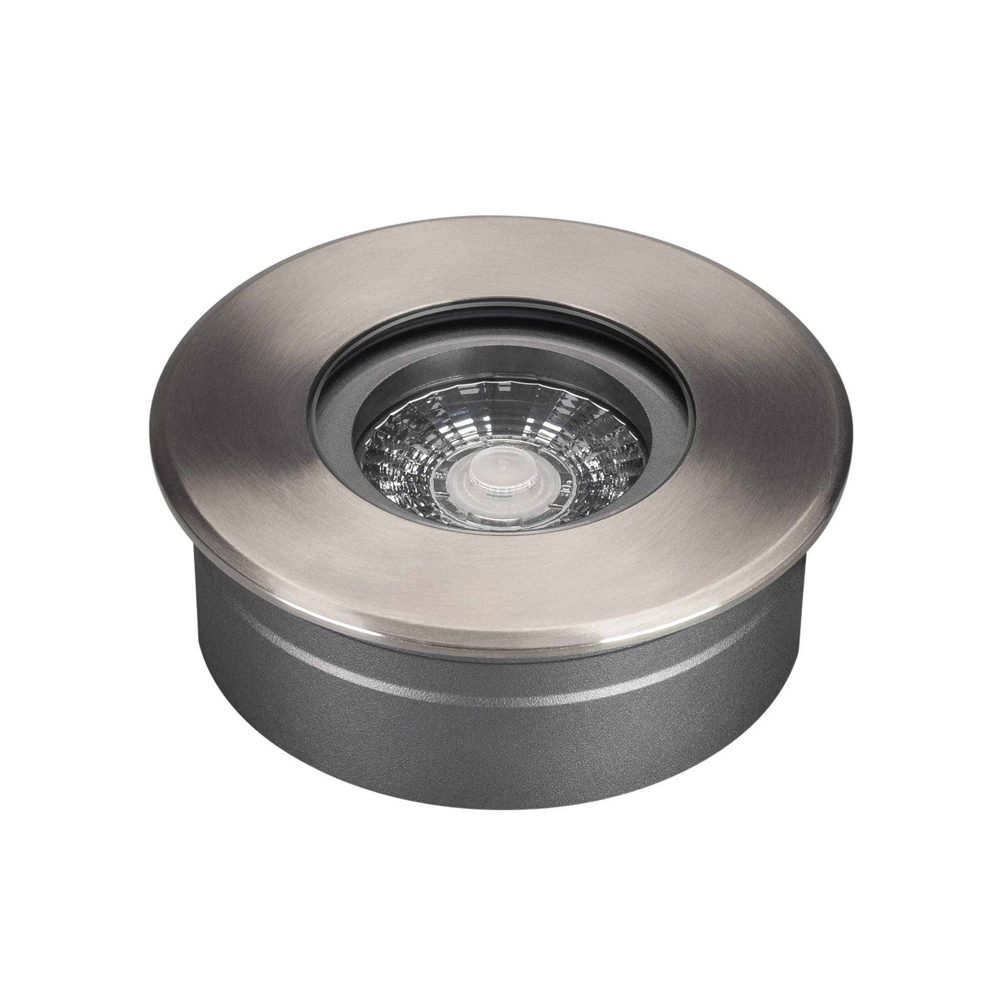 Встраиваемый светодиодный светильник для грунта и пола. Мощность 6Вт, световой поток 327лм, цвет ТЕПЛЫЙ 3000К. CRI(Ra)>80, угол 24°. Круглый влагозащищенный корпус IP67, нержавеющая сталь. Экран закалённое стекло. Питание AC100-245V, 6Вт. Размер DxH Ø65×110мм. Установка в отверстие DxH Ø53×110мм.