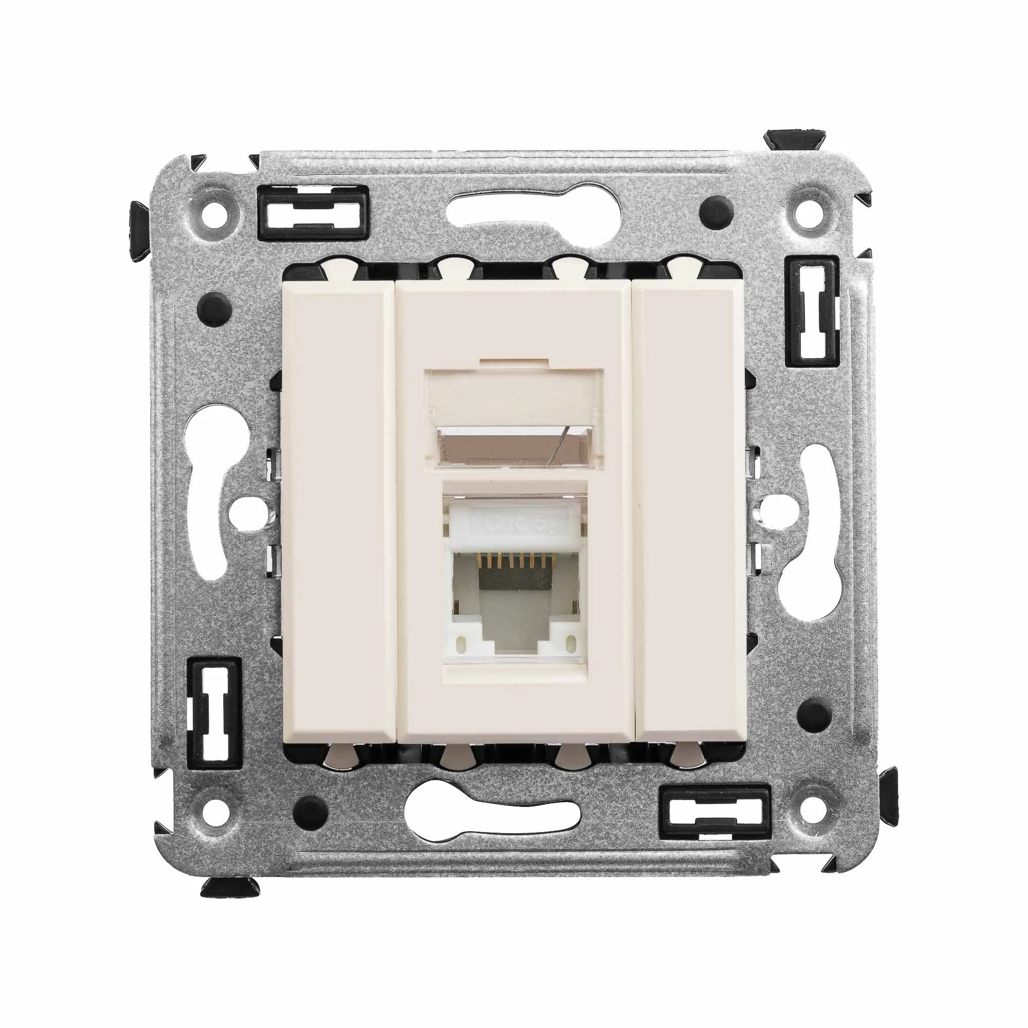 Компьютерная розетка одинарная используется для подключения телефонных/компьютерных кабелей. Компьютерная розетка предназначена для скрытого монтажа в стену. Розетка RJ-45 категории 5e – это наиболее популярная на сегодняшний день модель, обеспечивающая высокую скорость передачи данных (до 1000 Мбит/с). Материал – металл, термопласт. Пластиковые элементы изделия имеют цвет «Ванильная дымка» – светлый оттенок из пастельной цветовой гаммы, нежный […]