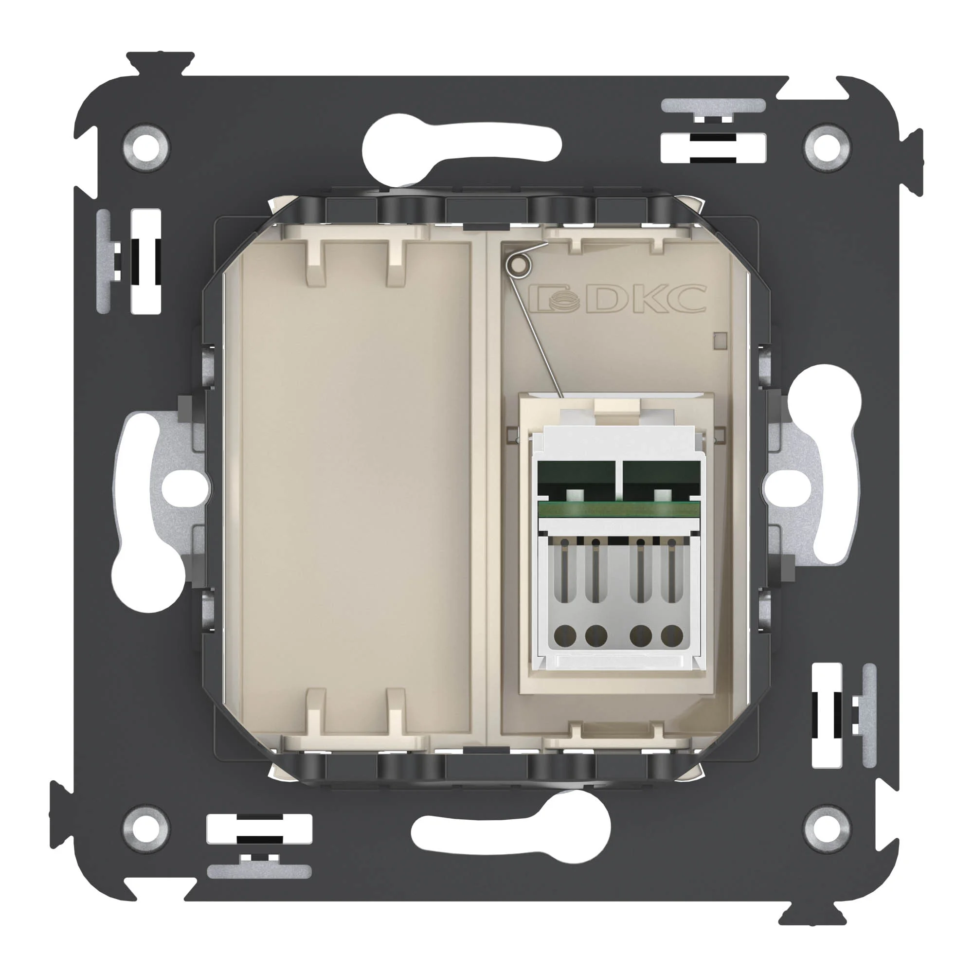 Механизм Systeme Electric (ранее Schneider Electric) серии Glossa (цвет шоколад) двойной розетки разъёмами RJ45 категория 5е и RJ11 предназначен для удобного и быстрого подключения вашего компьютера и телефона к соответствующим сетям. — Выполнен из материала PС+ASA, стойкого к УФ-излучению и появлению царапин.