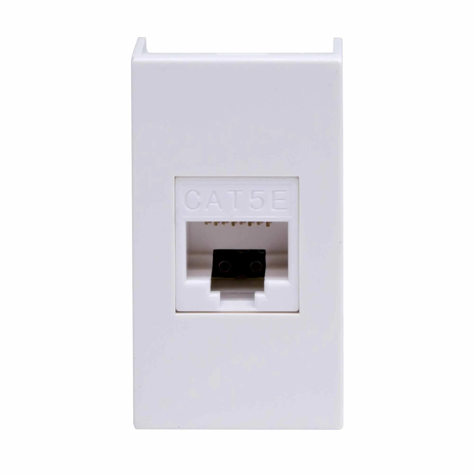 Компьютерная розетка. Назначение: подсоединение кабеля к компьютеру, принтеру и прочей оргтехнике. Характеристики: 8Р8С; комплектуются одномодульным гнездом; для заделки контактов в розетки использовать инструмент типа 110. RJ-45. Категория: 5е. Тип гнезда: Keystone. Производитель гнезда: Hyperline. Установочный размер: 45х25. Кол-во модулей: 1. Цвет: белый