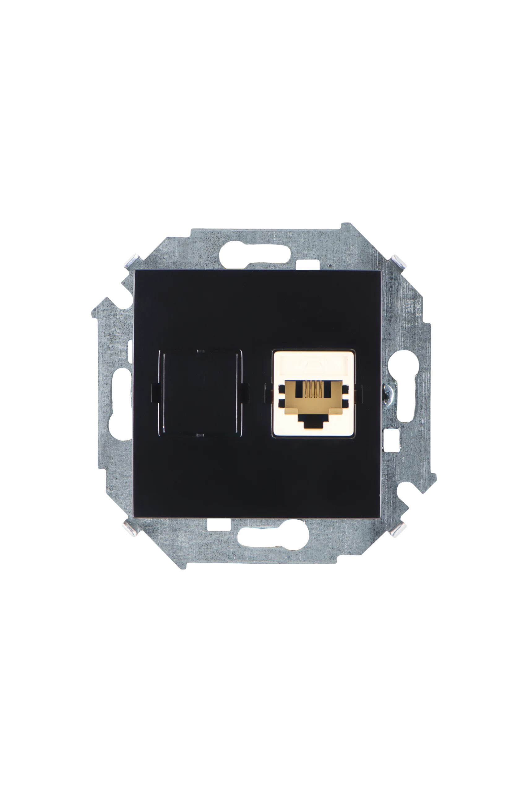 Компьютерная розетка. Назначение: подсоединение кабеля к компьютеру, принтеру и прочей оргтехнике. Характеристики: 8Р8С; комплектуются одномодульным гнездом; для заделки контактов в розетки использовать инструмент типа 110. RJ-45. Категория: 5е, экранированная. Тип гнезда: Keystone. Производитель гнезда: Hyperline. Установочный размер: 45х25. Кол-во модулей: 1. Цвет: черный