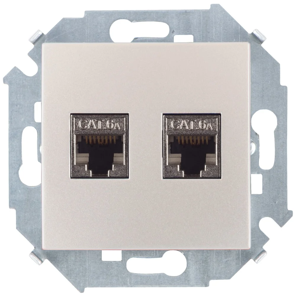 Компьютерная розетка двойная RJ-45 для монтажа в стену. Назначение: для монтажа в подрозеточные коробки глубиной не менее 45 мм (код 59301); подключение сетевого кабеля к рабочему месту. Характеристики: 8P8C; с пылезащитной шторкой; с маркировочной табличкой; в комплекте разъем Keystone; заделка без инструмента. Категория: 6. Кол-во модулей: 2. Цвет: «Закаленная сталь»