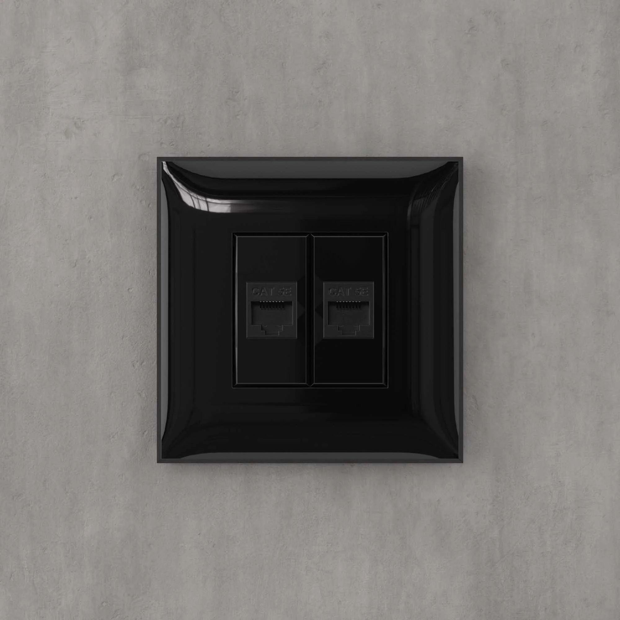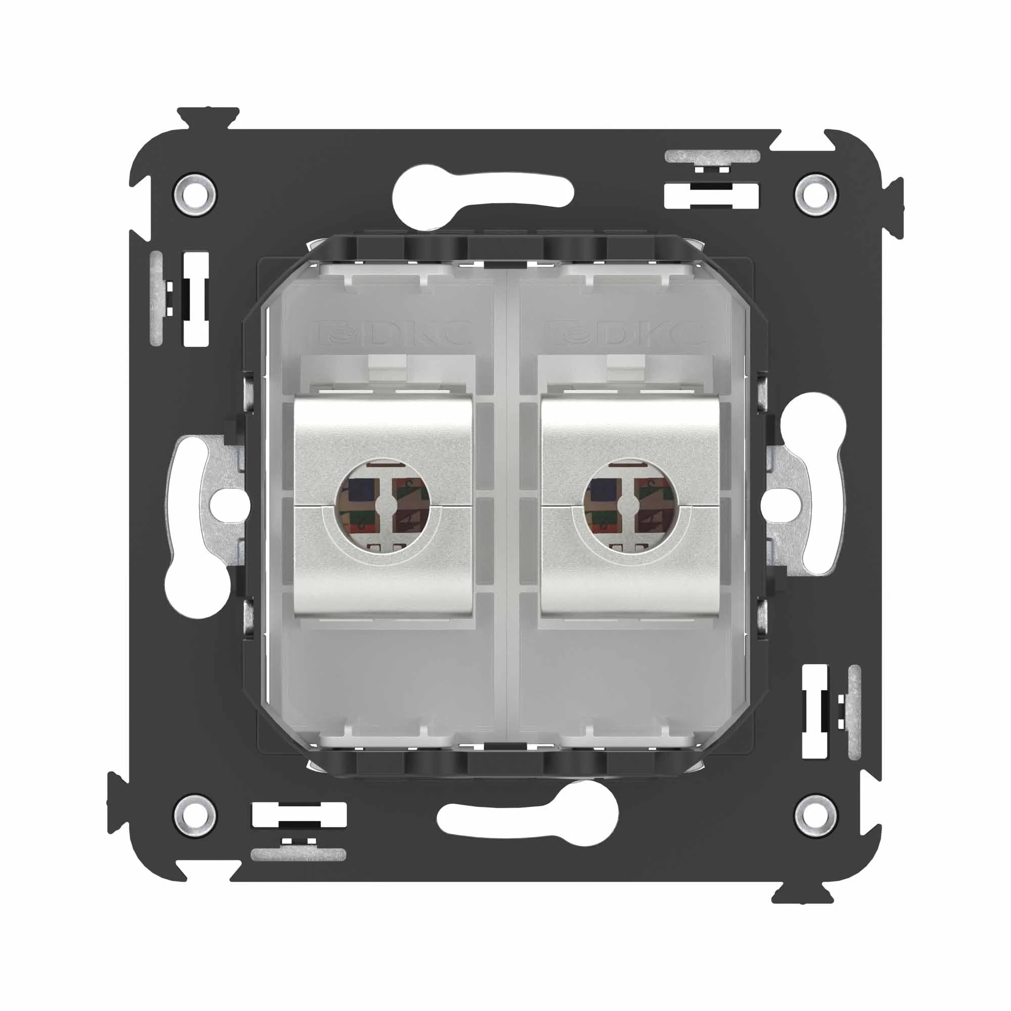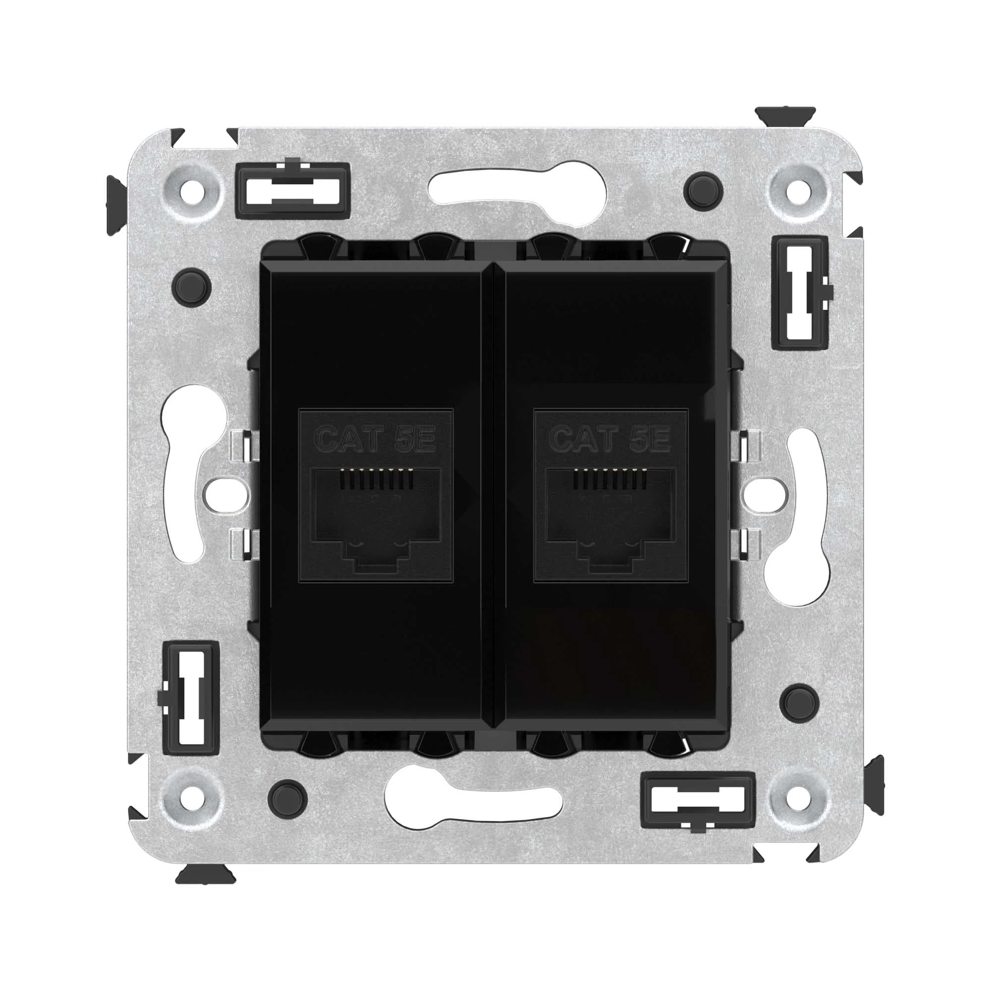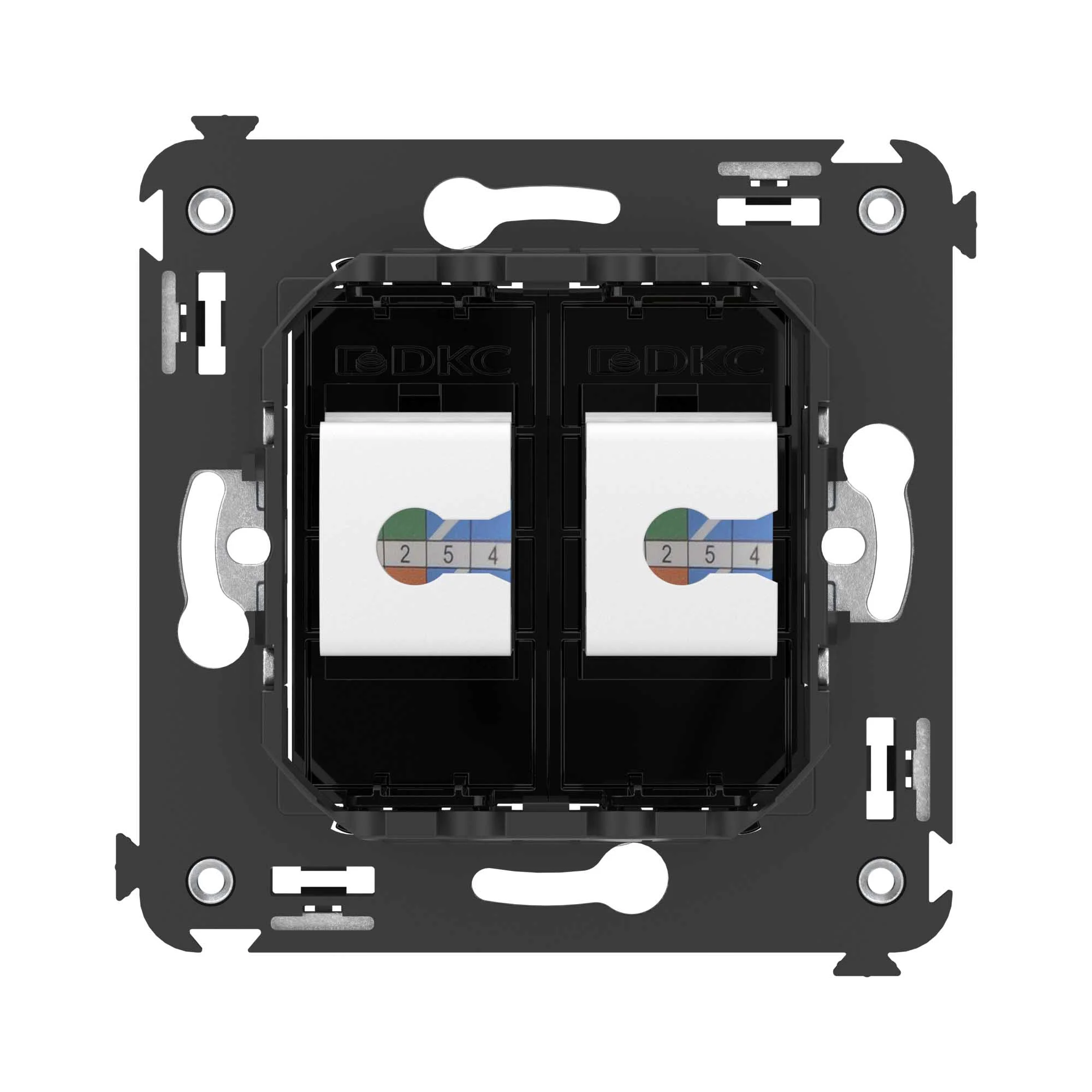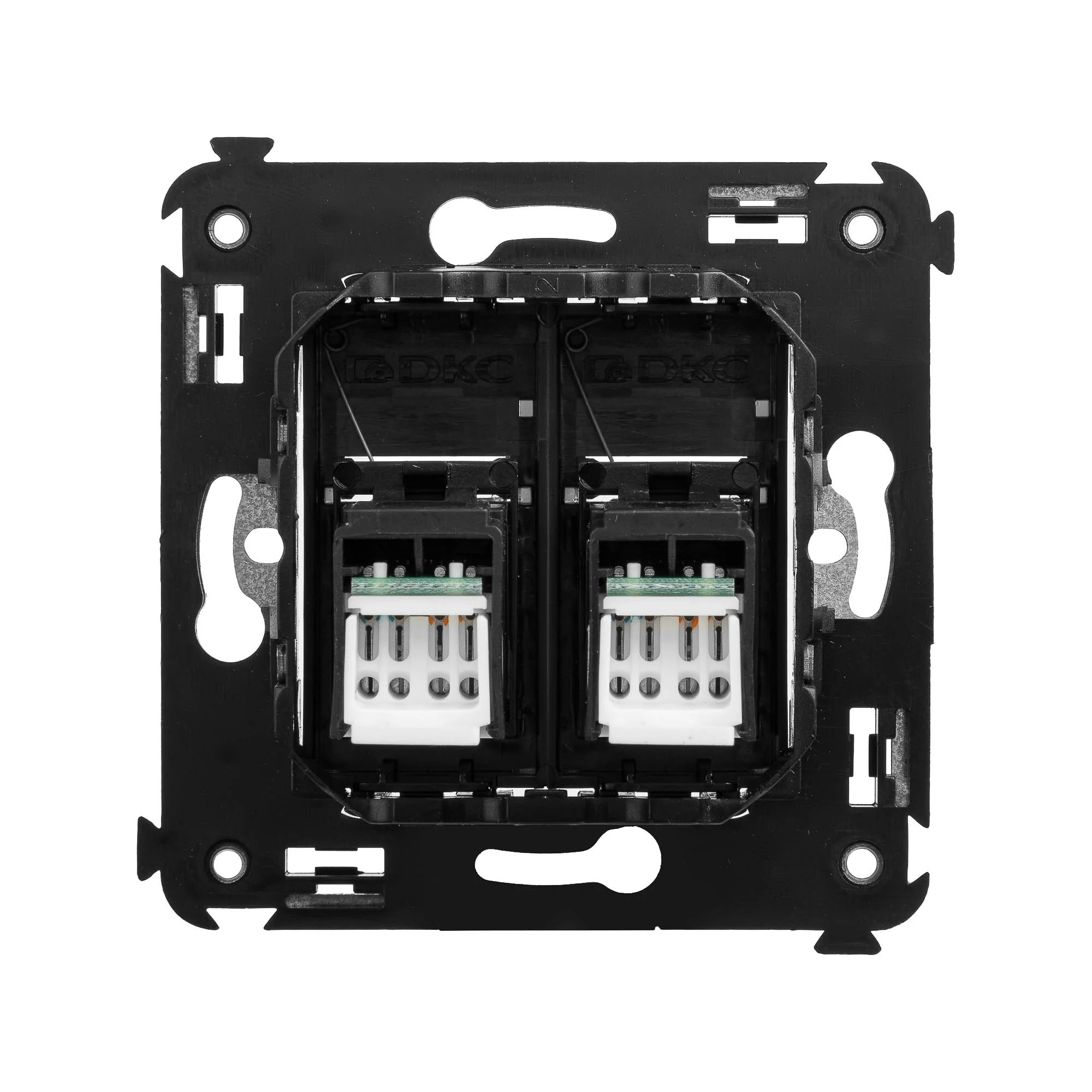DKC Avanti Компьютерная розетка RJ-45 без шторки в стену, кат.5е двойная, «Черный квадрат»
