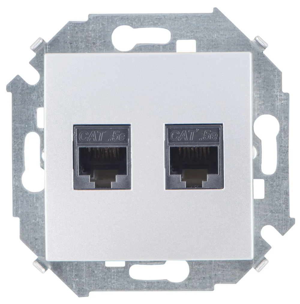 Розетка компьютерная RJ-45 с 2 разъемами. Назначение: подсоединение кабеля к компьютеру, принтеру и прочей оргтехнике. Характеристики: 8P8C; комплектуются 2-модульными гнездами; для заделки контактов в розетки использовать инструмент типа 110; с пылезащитными шторками (крышками); с окном (полем) для маркировки «рабочего места», размер окна − 6х37 мм. Категория: 6, экранированная. Кол-во модулей: 2. Цвет: слоновая кость