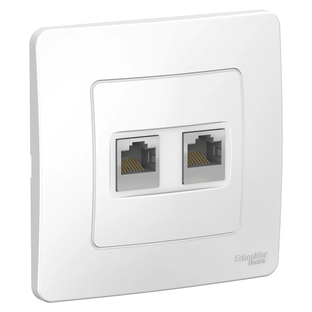 Механизм Systeme Electric (ранее Schneider Electric) серии Glossa (цвет молочный) двойной розетки компьютерной с разъёмом RJ45 категория 5е предназначен для удобного и быстрого подключения вашего компьютера к компьютерной сети. — Выполнен из материала PС+ASA, стойкого к УФ-излучению и появлению царапин.