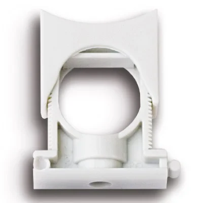 Раздвижной держатель из полиамида с крышкой фиксируется на поверхностях стен, потолков и т.п. и используется для крепления полиамидных труб. Внутренний диаметр держателя регулируется от 17 до 23 мм.